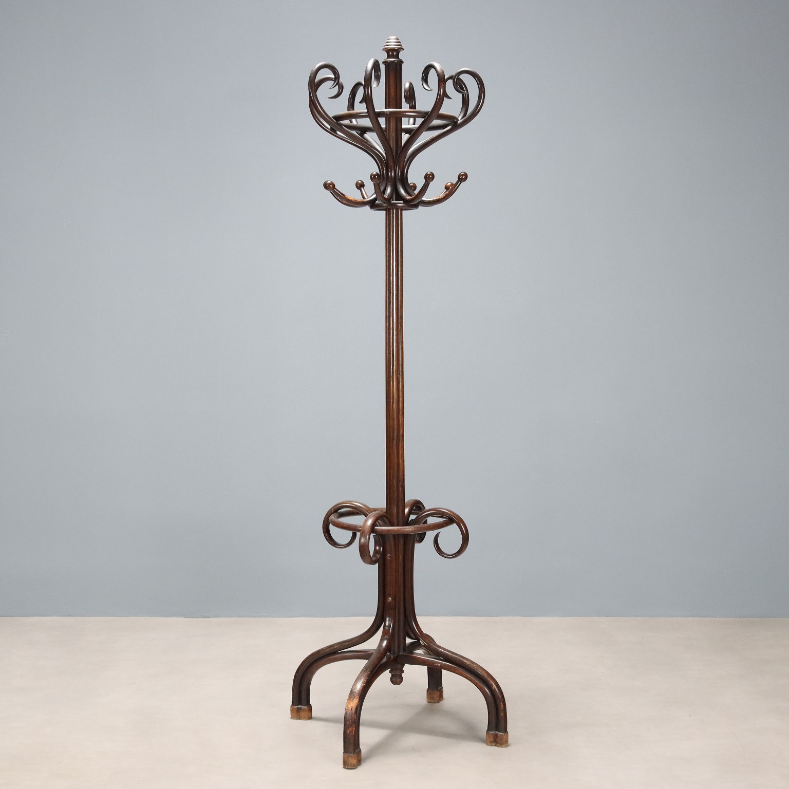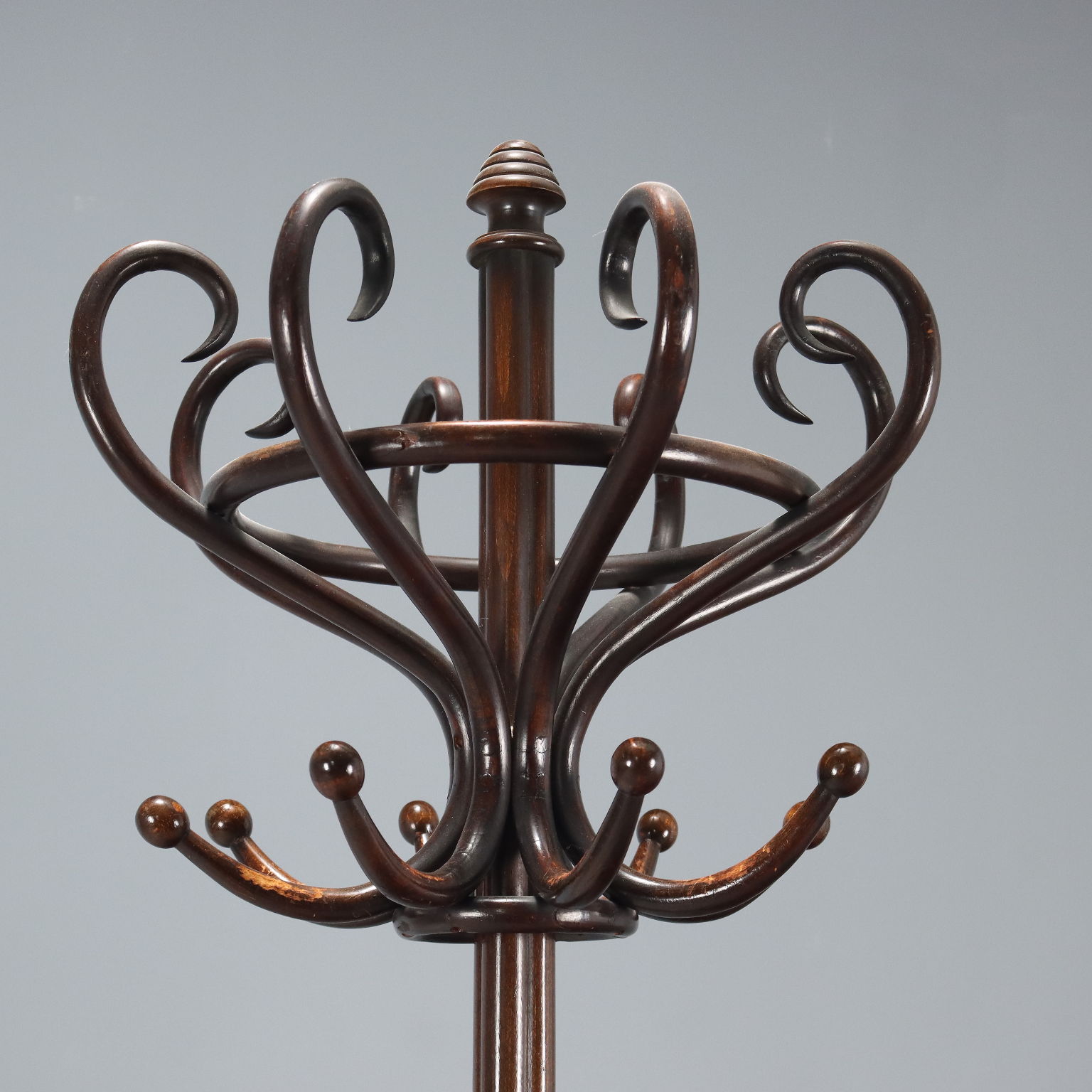Perchero estilo Thonet en haya curvada teñida de nogal. Austria, principios del siglo XX.