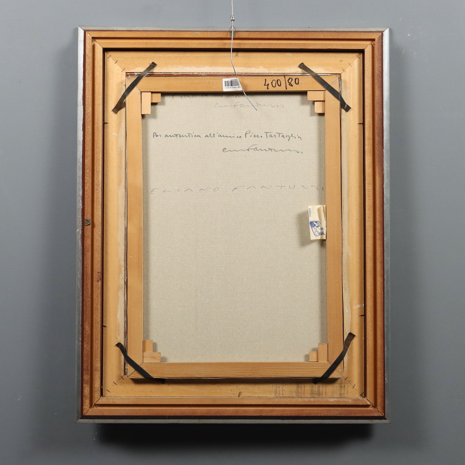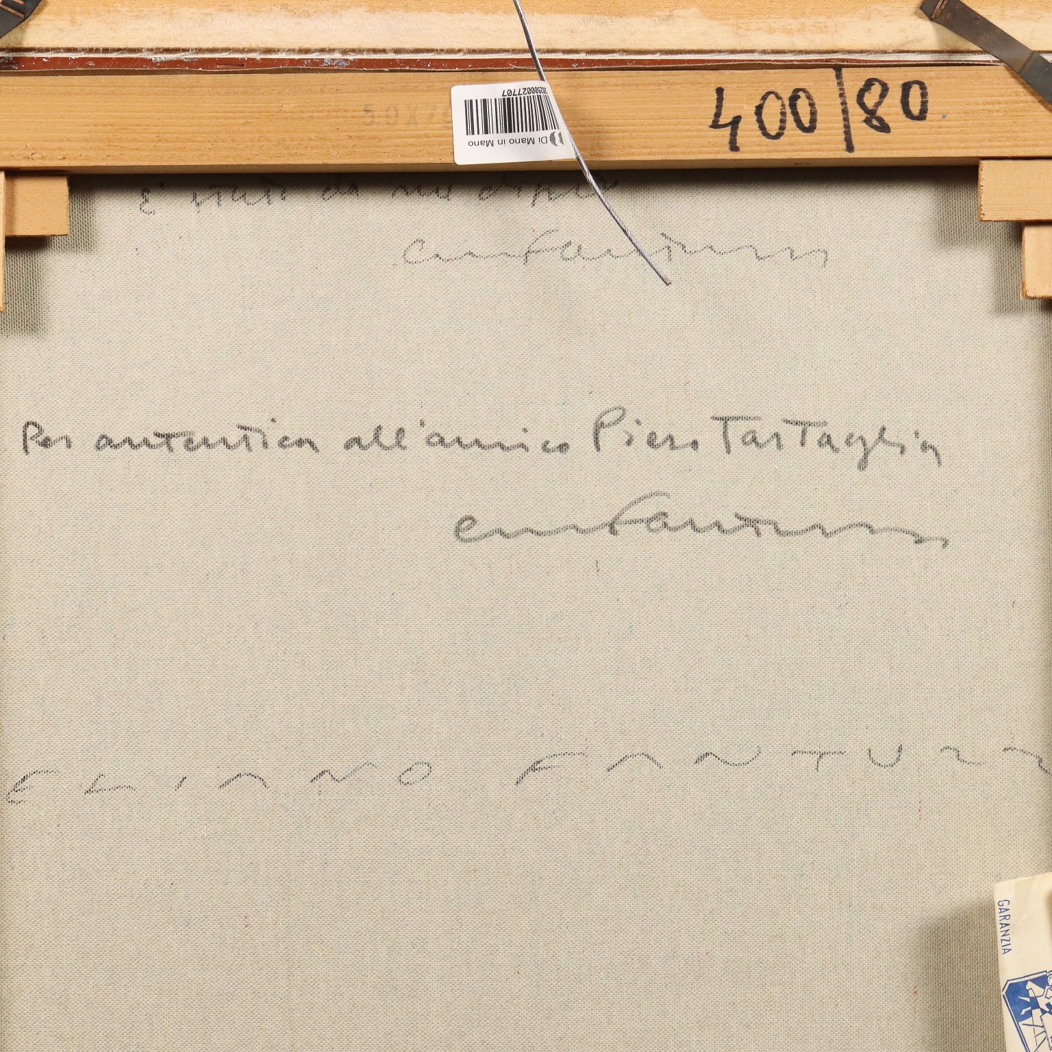 Eliano Fantuzzi, nacido en Módena pero criado y formado artísticamente en Verona, siendo muy joven se traslada a París, fascinado primero por la Ilustración y luego por las tendencias expresionistas, y en esta ciudad comienza a exponer y construir su carrera. Después de haber servido durante algunos años en el ejército francés, regresó a Italia en 1943, pero en 1948 fue llamado por el emir Ibim Saud para decorar el palacio saudita de Taif, donde permaneció hasta 1952, pintando frescos en la sala de recepción. De regreso definitivo a Italia, expuso en exposiciones y bienales.nTiempo: Contemporáneo