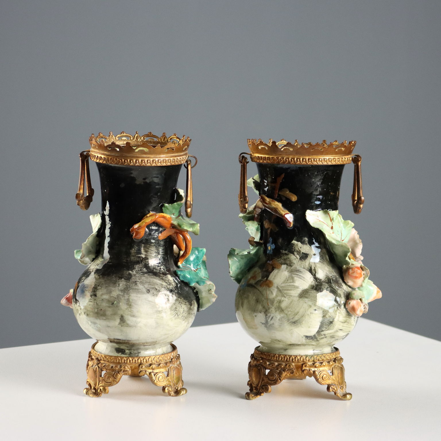 Par de jarrones de cerámica y bronce de Barbotine - Francia, principios del siglo XX
