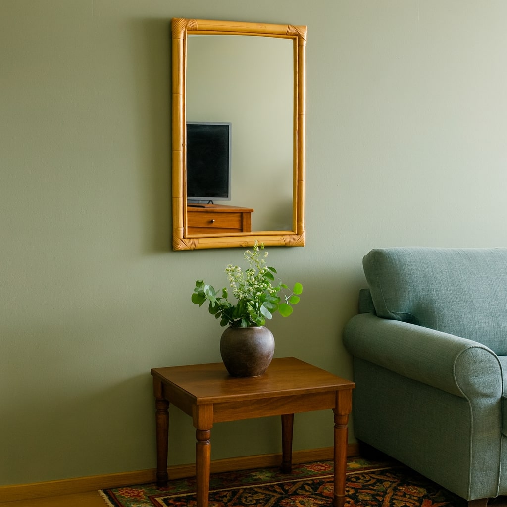 Miroir Vintage Design Cadre en Bambou Osier des Années 1980