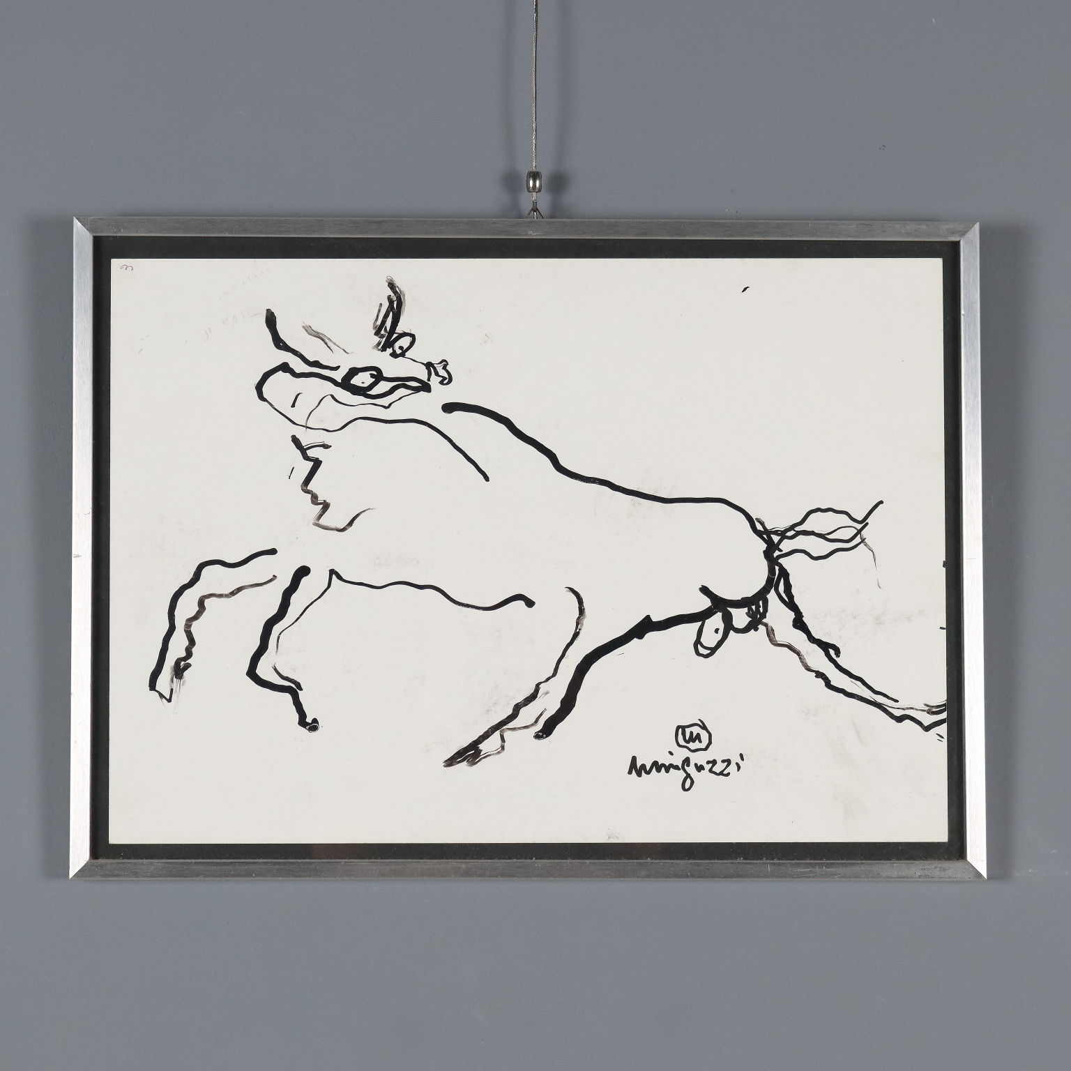 Dessin Contemporain Signé Luciano Minguzzi Taureau XXe Siècle - Taureau