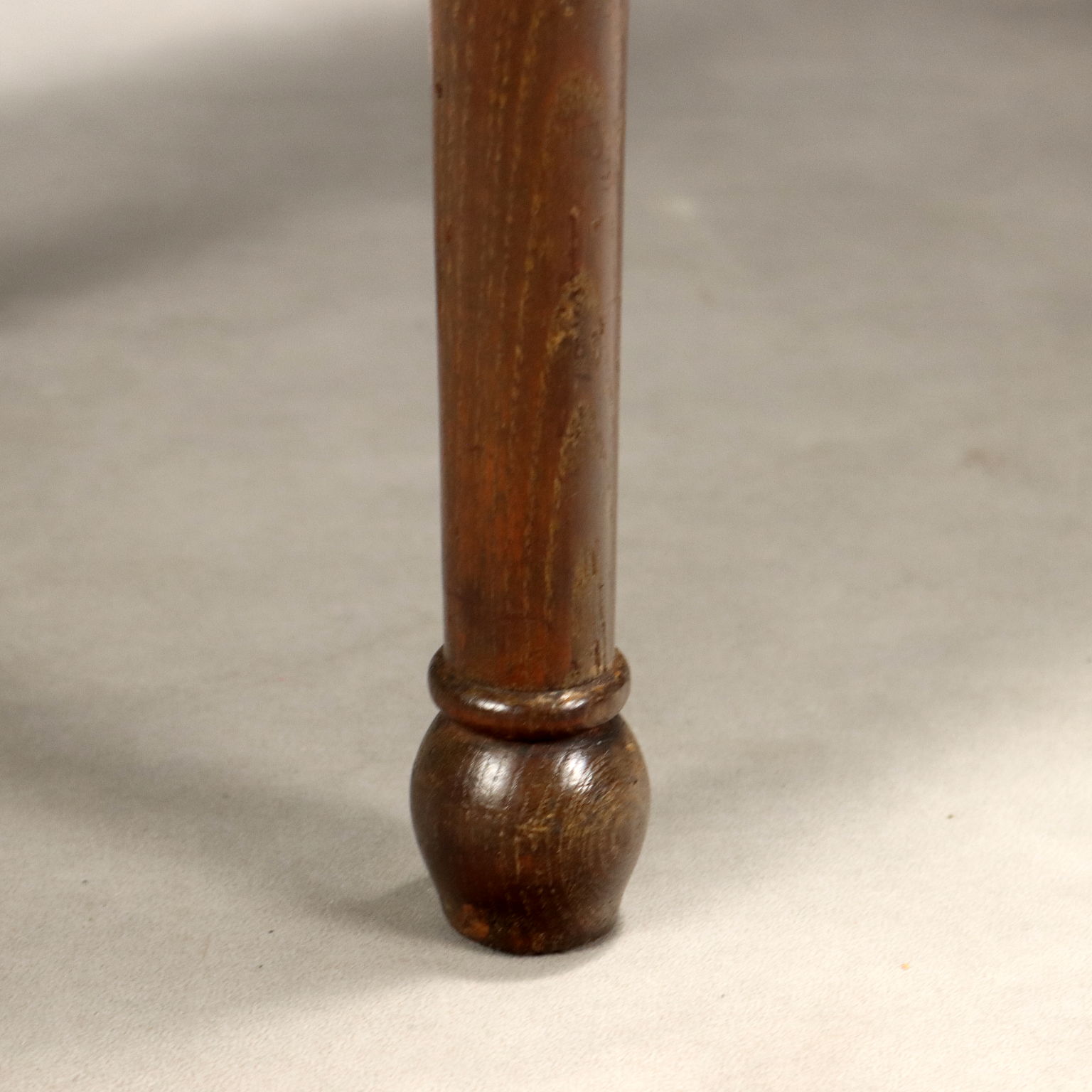 Bureau en orme. Plateau plaqué acajou avec charnière rabattable dissimulant des compartiments ouverts et un miroir sous le plateau. Pieds tournés. Italie, XIXe siècle.