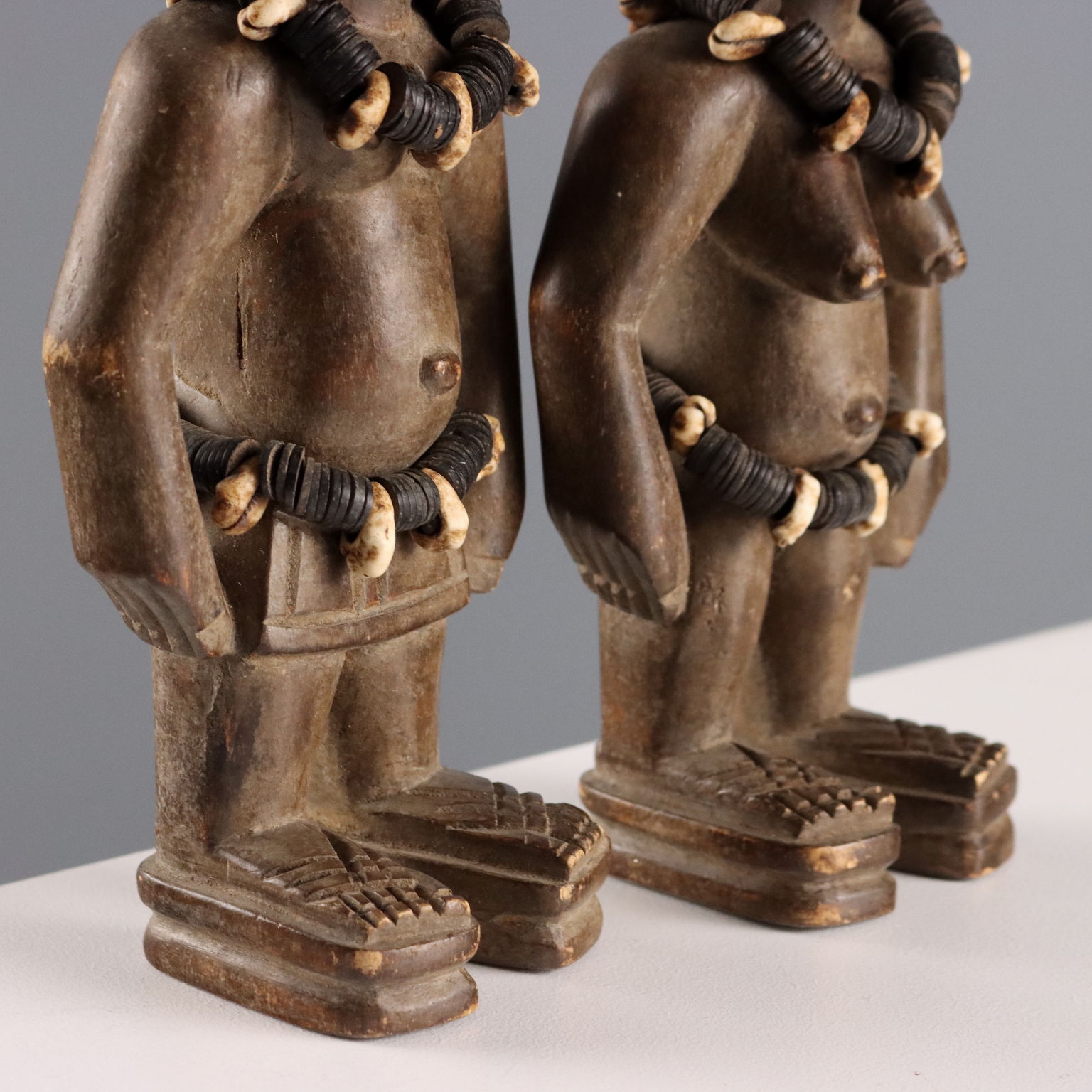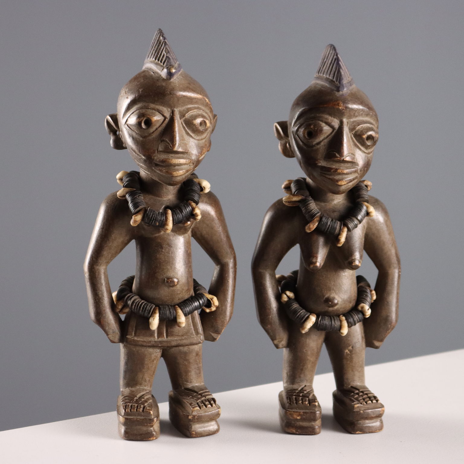Paire de figurines « Ibedji » en bois dédiées au culte des jumeaux. Art yoruba, Nigéria.