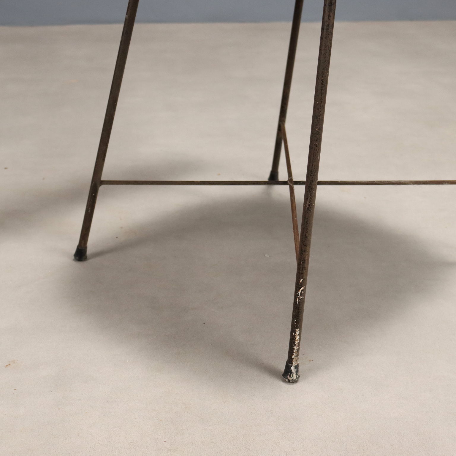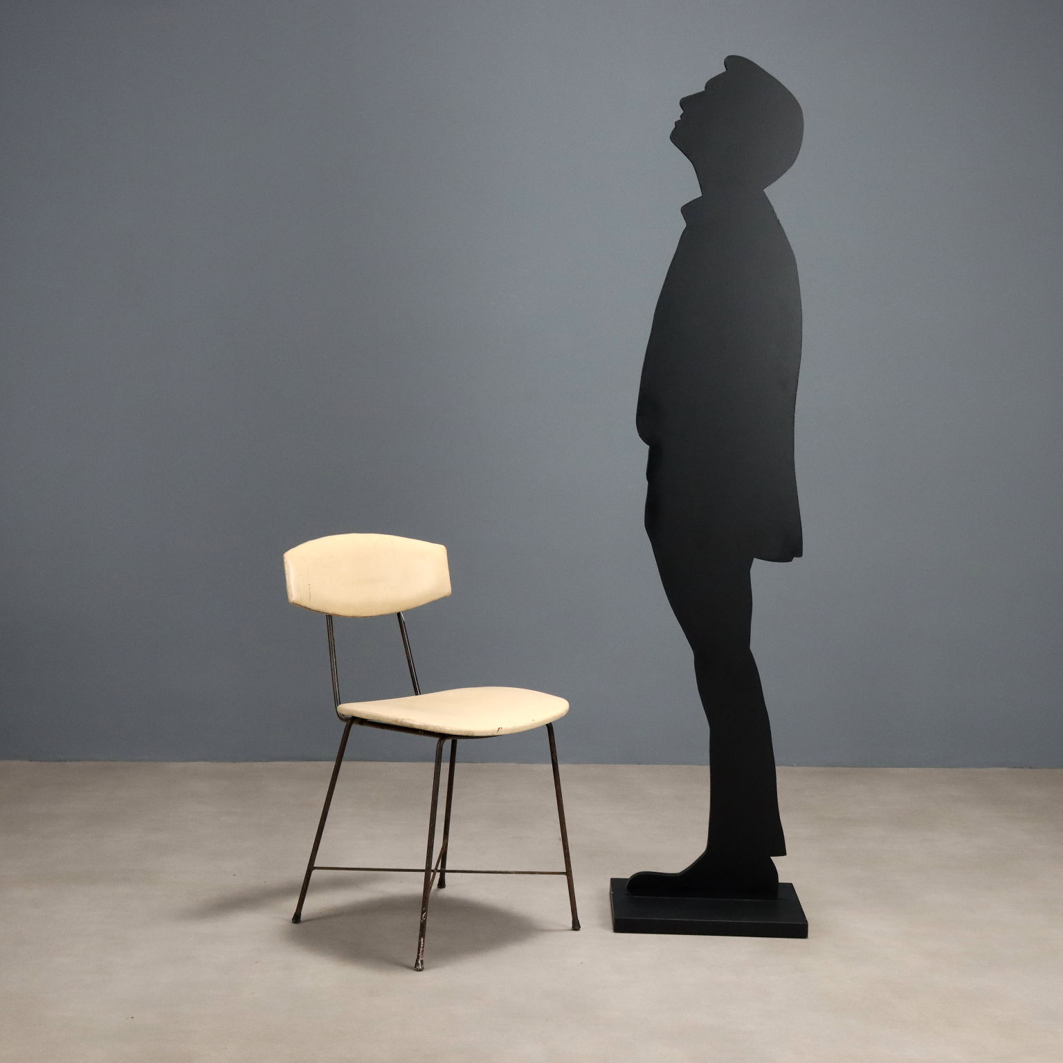 Chaise vintage avec structure en métal émaillé, assise et dossier recouverts de skaï d'époque dans des tons crème.