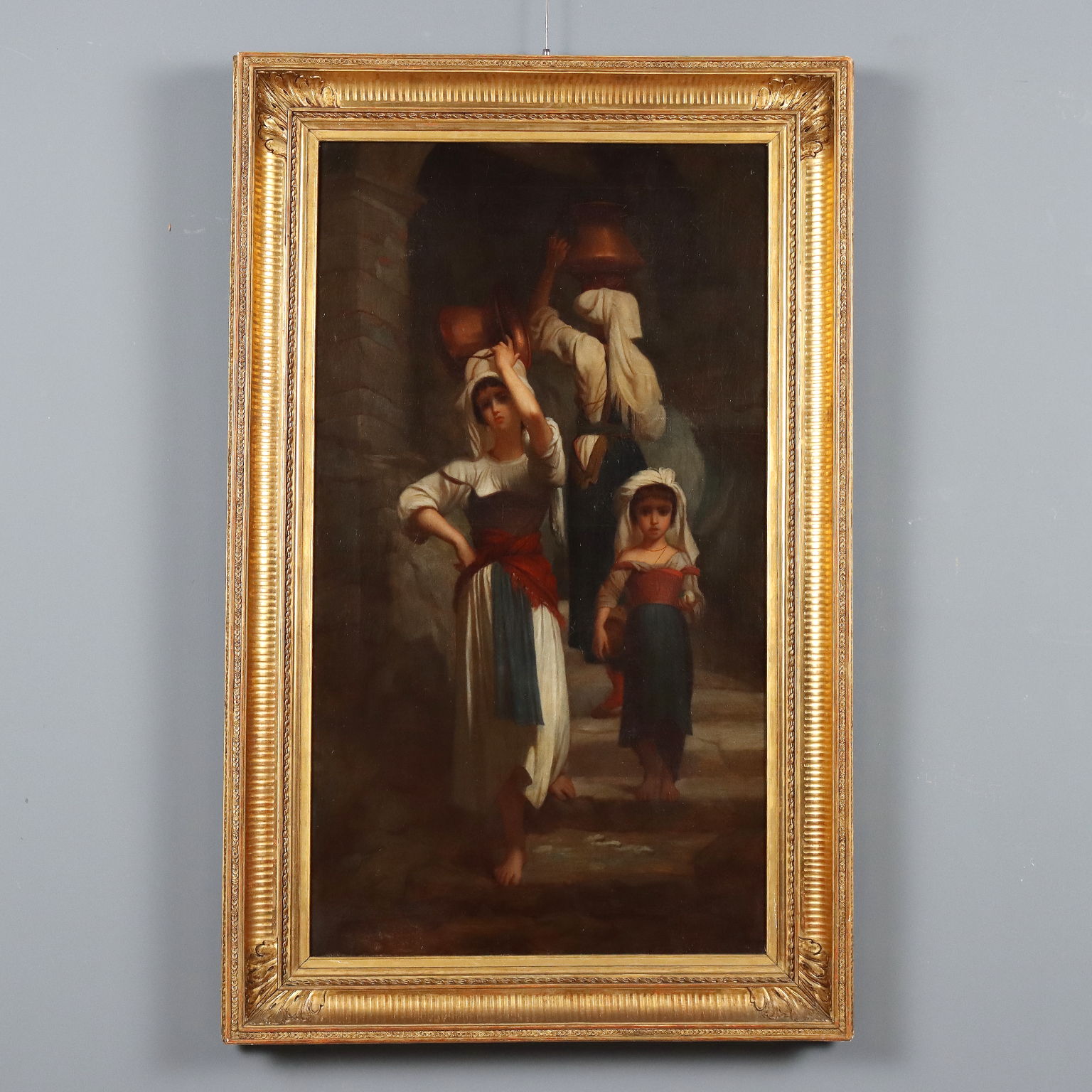 Huile sur toile. Ce tableau de grande qualité est une réplique de l'œuvre d'Hébert de 1856, exposée au Salon Carré en 1859 et à l'Exposition internationale du Champ de Mars en 1867. Il est actuellement conservé au musée d'Orsay. La toile représente trois générations de femmes, symbolisant les trois âges de la vie : l'enfance, la jeunesse et la vieillesse. On y voit une petite fille et deux femmes passant sous une arche pour puiser de l'eau. Hébert vécut plusieurs années à Cervara, un ancien village de la province de Rome, célèbre pour ses figures rupestres. Dans ses œuvres à sujets populaires, il a dépeint la vie et l'âme des villageois, leurs gestes quotidiens et leurs émotions. L'œuvre présentée ici date de la même époque.