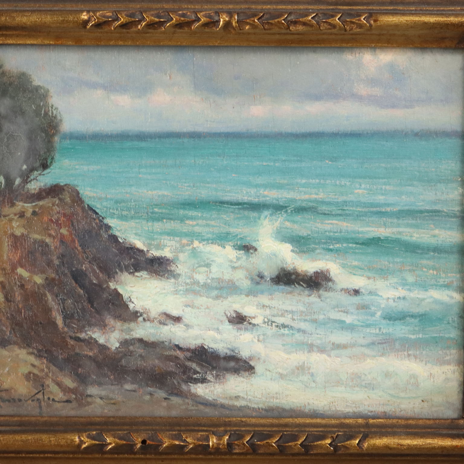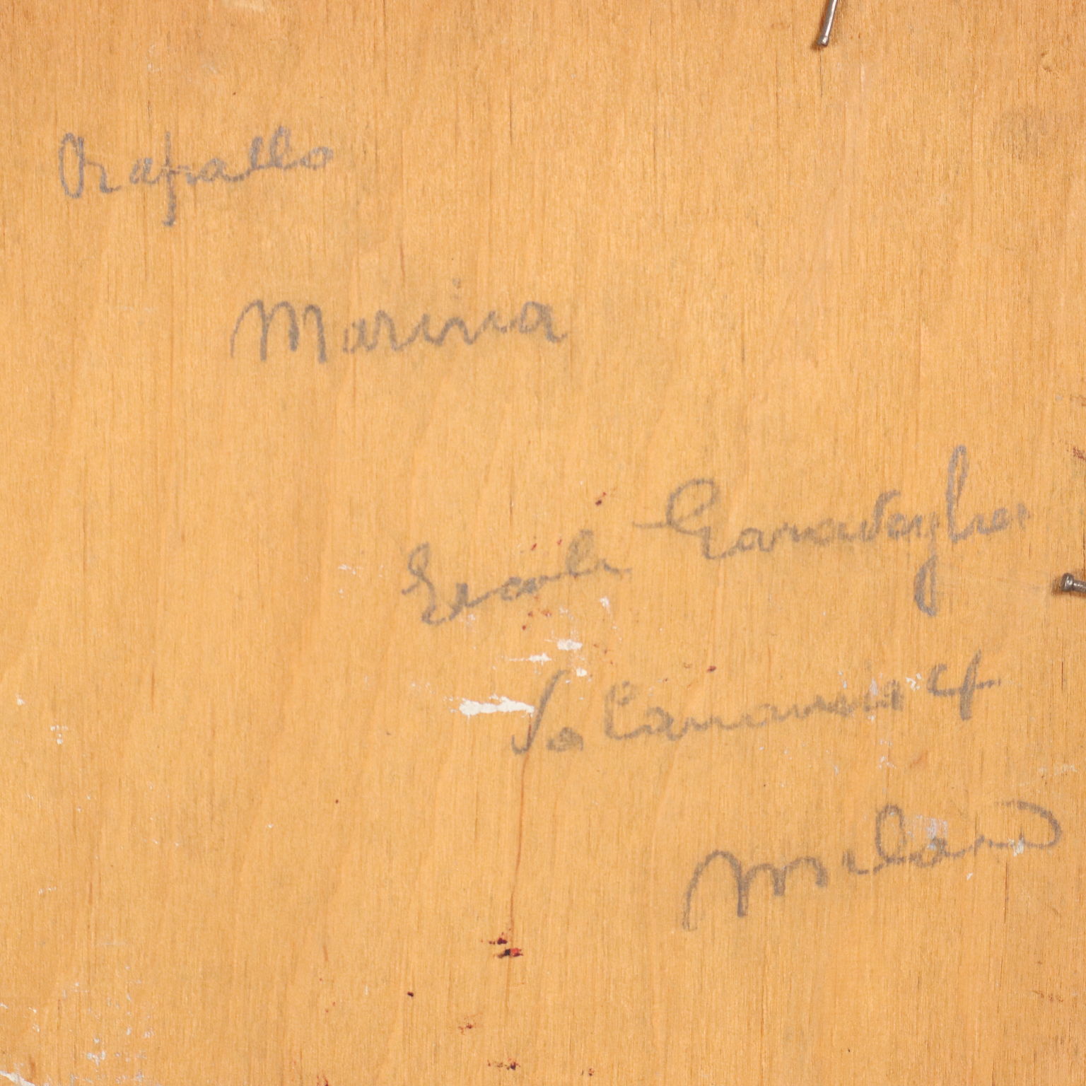 Huile sur panneau. Signée en bas à gauche. Au verso figurent une autre signature, le titre et l'adresse de l'atelier de l'artiste à Milan (Via Canonica 4). Né et élevé à Milan, Garavaglia fréquentait également la Ligurie, dont il a peint plusieurs vues. Cette petite vue est présentée dans un cadre contemporain.