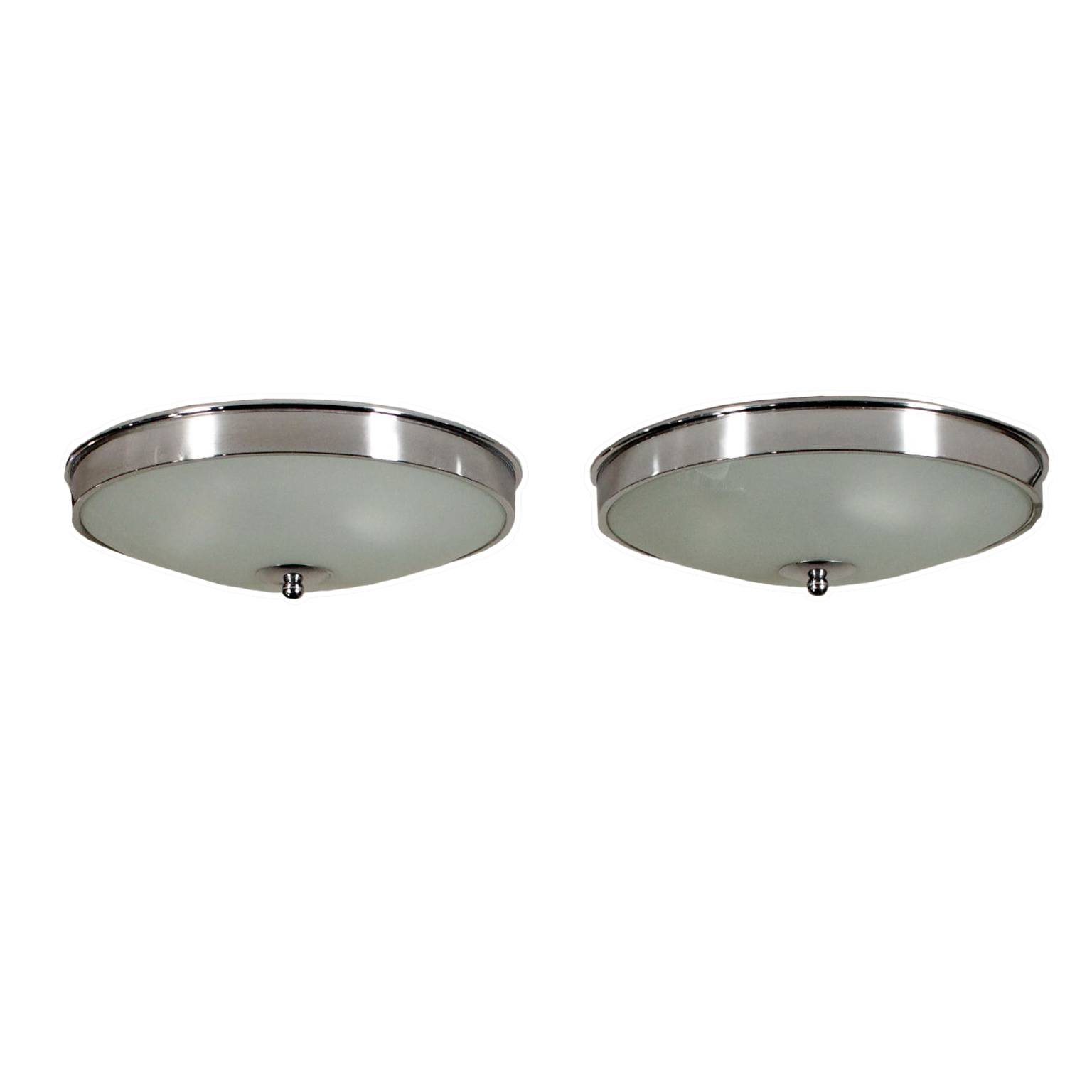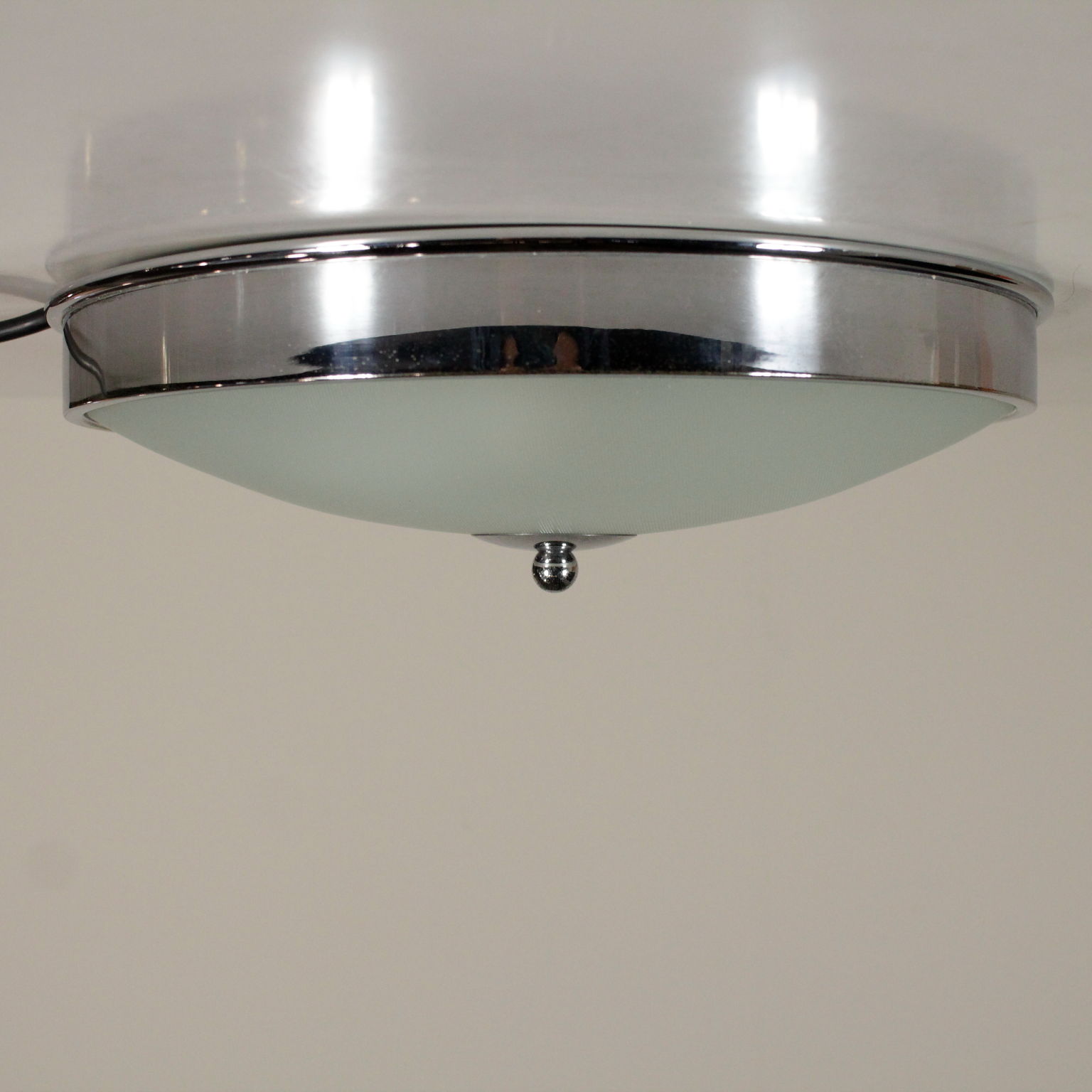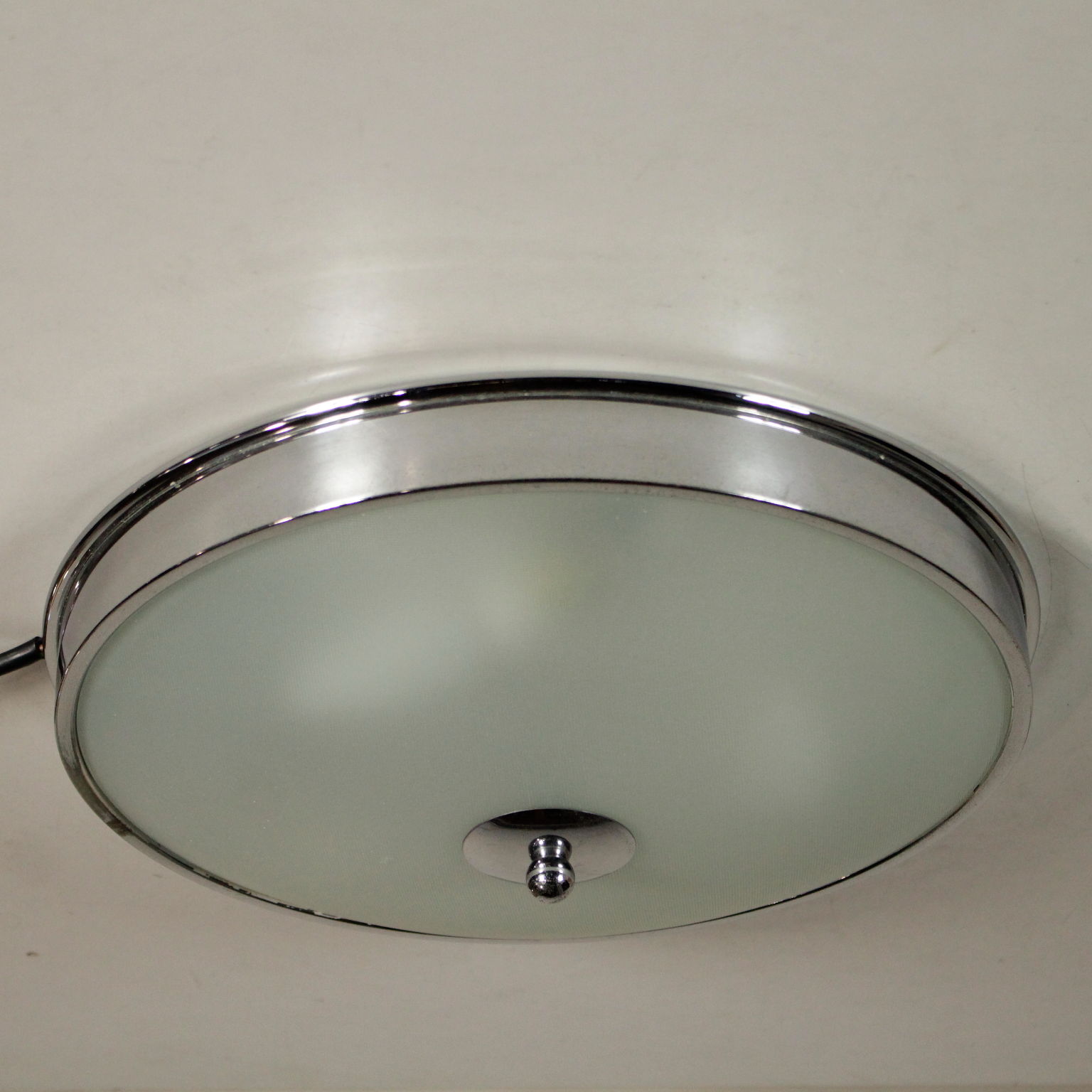 Coppia di lampade a parete o soffitto; alluminio cromato, vetro.