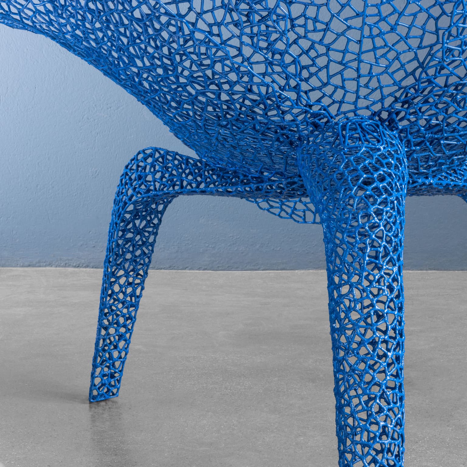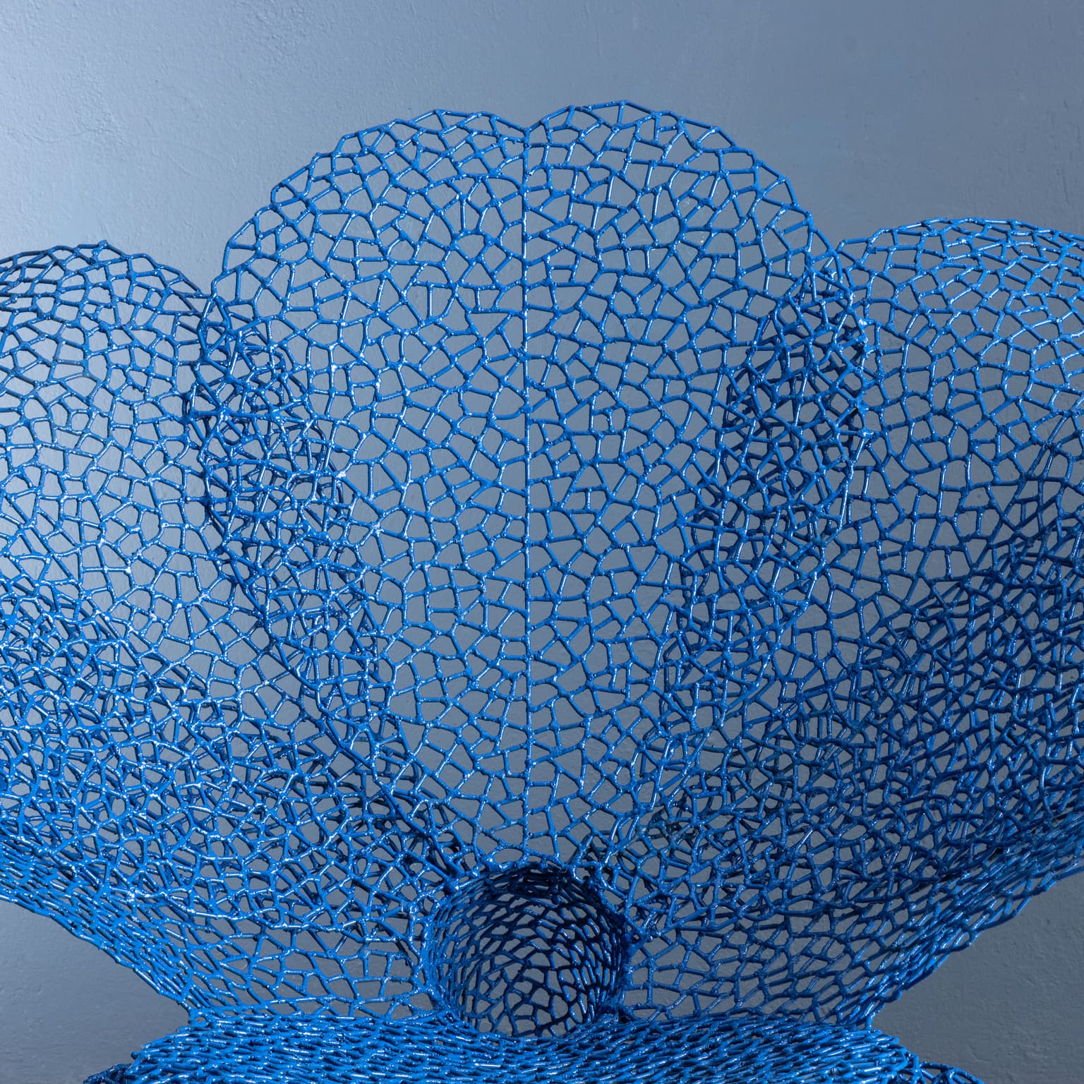 Poltrona disegnata e realizzata da Anacleto Spazzapan mediante la saldatura di piccole parti di ferro ricavate da un tondino e successivamente smaltate di blu che richiama la forma di un fiore con petali tondi, di cui porta il nome. Seduta che riporta le iniziali dell'artista ed appartiene alla serie 'Merletto'.