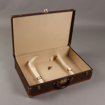 Valigia rigida nell'iconica tela monogram di Louis Vuitton. Il modello è Bisten 70 centimetri di lunghezza. Gli interni sono foderati, i manici arrotondati in pelle e gli angoli in ottone uno è stato sostituito) La serratura, originale, è dotata di chiavi che funzionano perfettamente. Non presenta più l'etichetta interna adesiva recante il numero univoco del prodotto, può essere datata anni '70 '80. Presenta alcuni segni dovuti ai viaggi e al tempo. Oggetto da collezione. Le condizioni sono buone: presenta alcuni segni sia sulla pelle che sulla tela dovuti al tempo e ai viaggi.