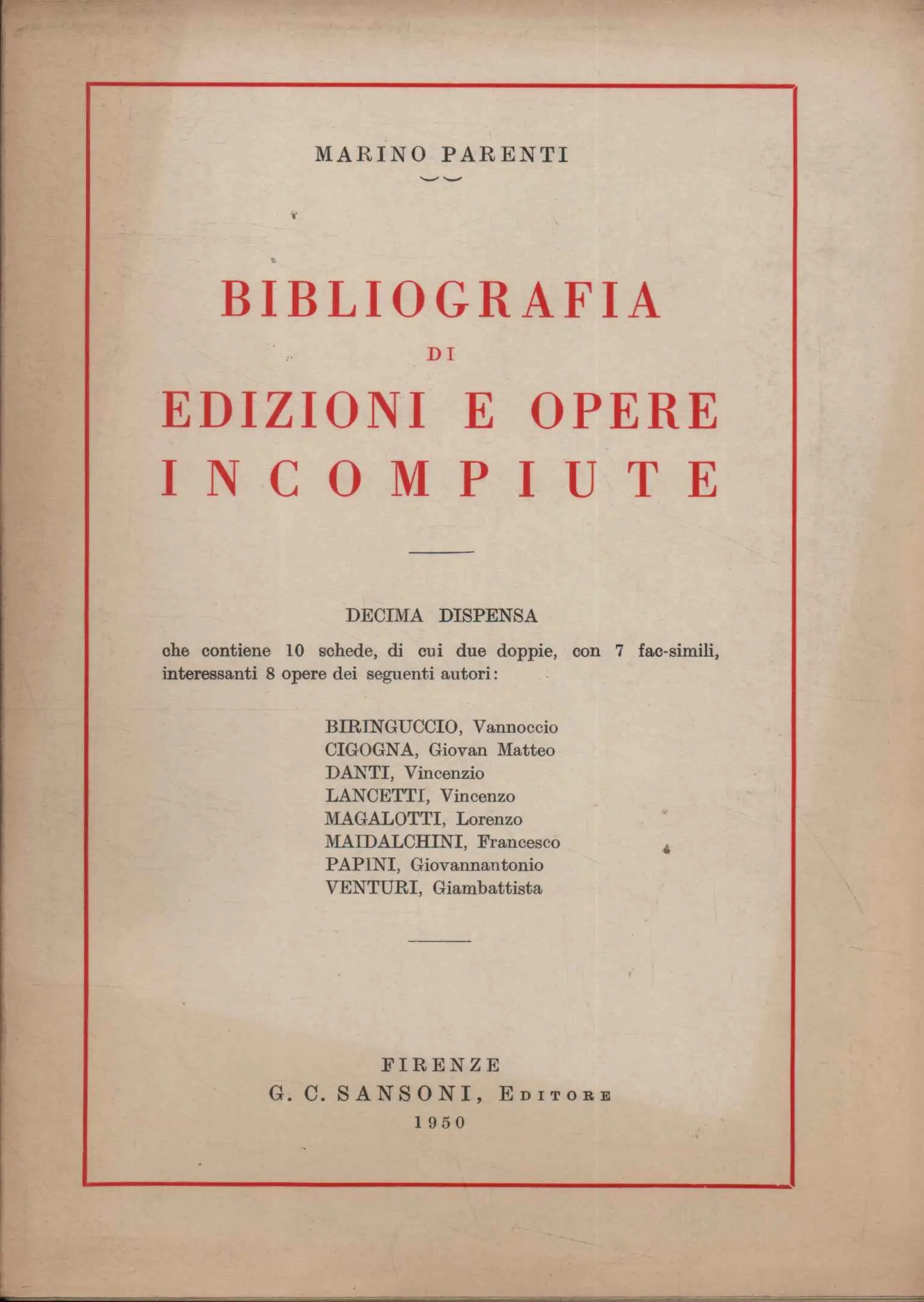 Bibliografia di edizioni e opere incompiute (Decima dispensa)