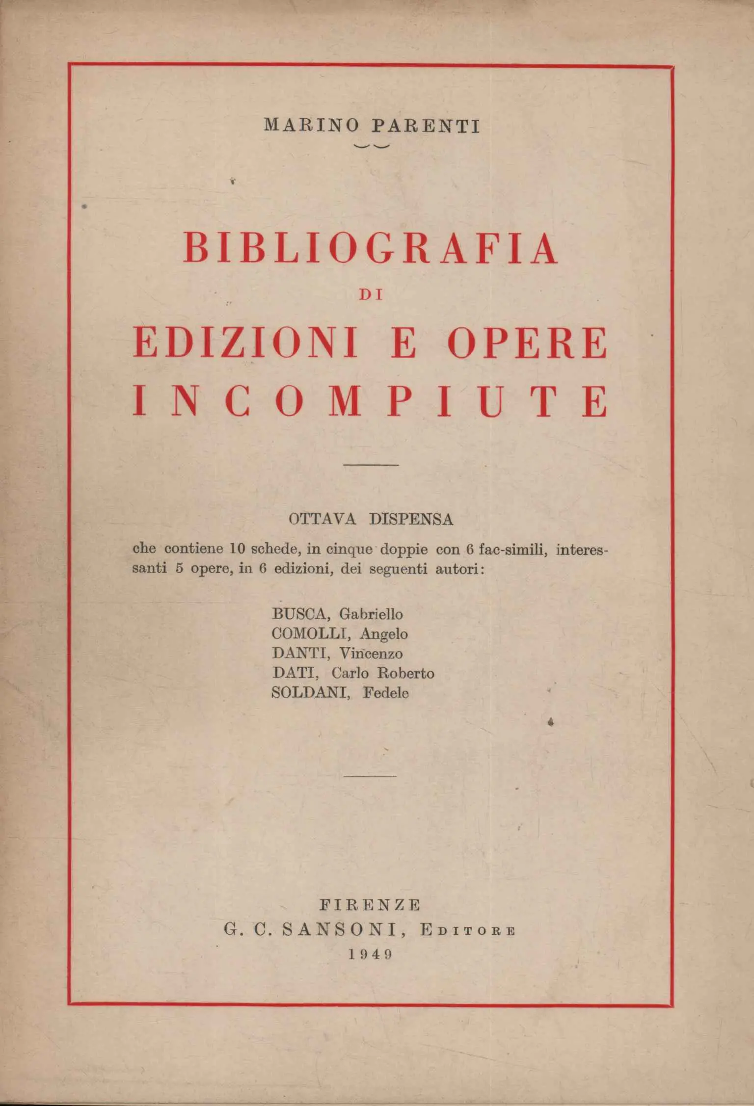 Bibliografia di edizioni e opere incompiute (Ottava dispensa)