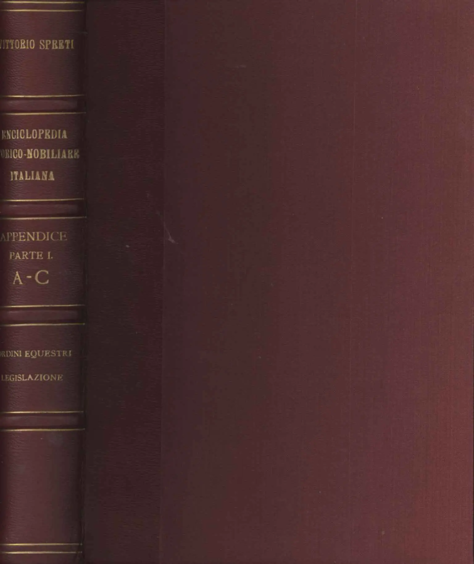 Enciclopedia storico-nobiliare italiana. Appendice. Parte I A-C - Famiglie nobili e titolate riconosciute dal R.° Governo d'Italia e contenute negli elenchi regionali e ufficiali compresi: città, comunità, mense vescovili, abazie, parrocchie ed enti nobili e titolati riconosciuti