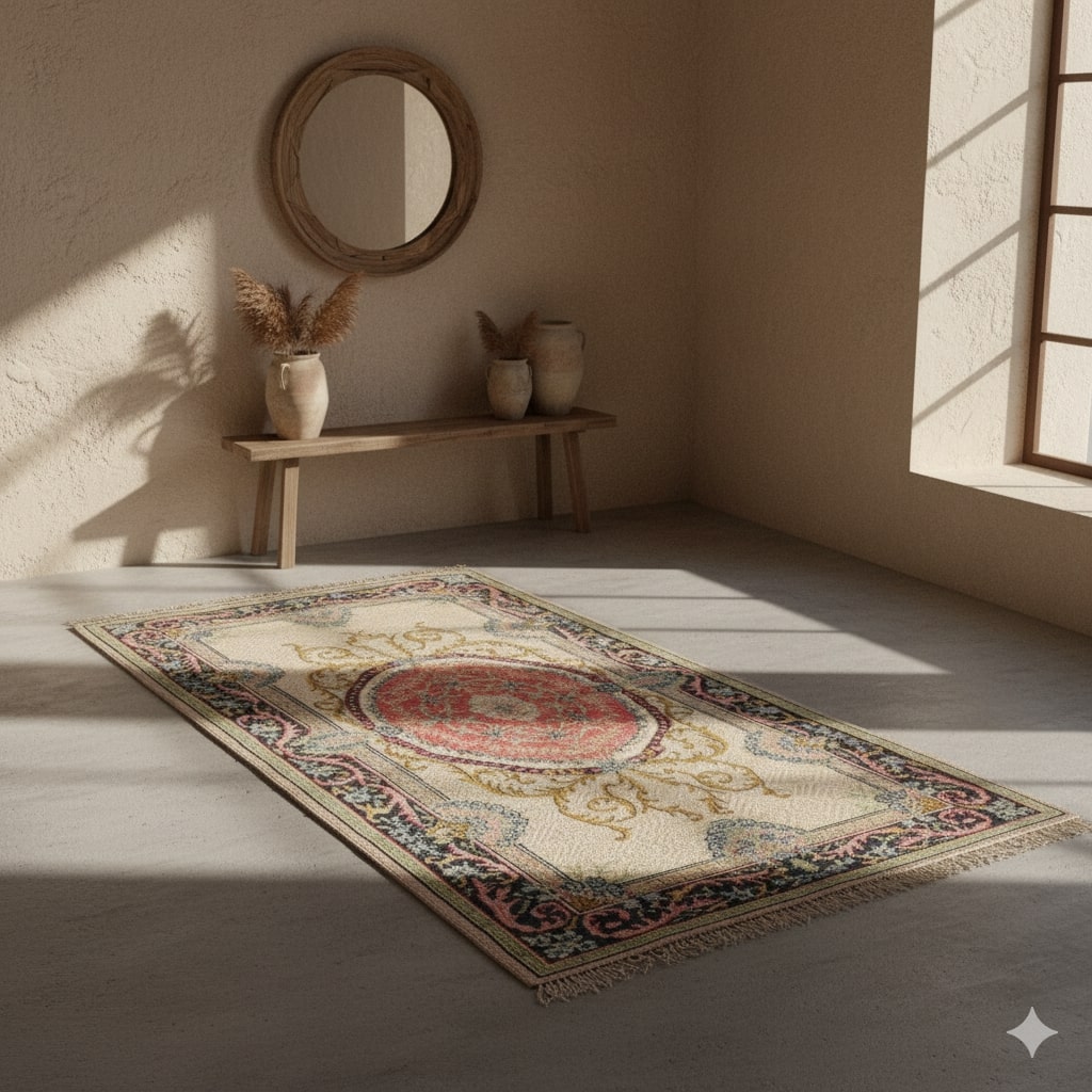 Tappeto Kaysery in cotone e lana, nodo grosso, fabbricazione manuale.