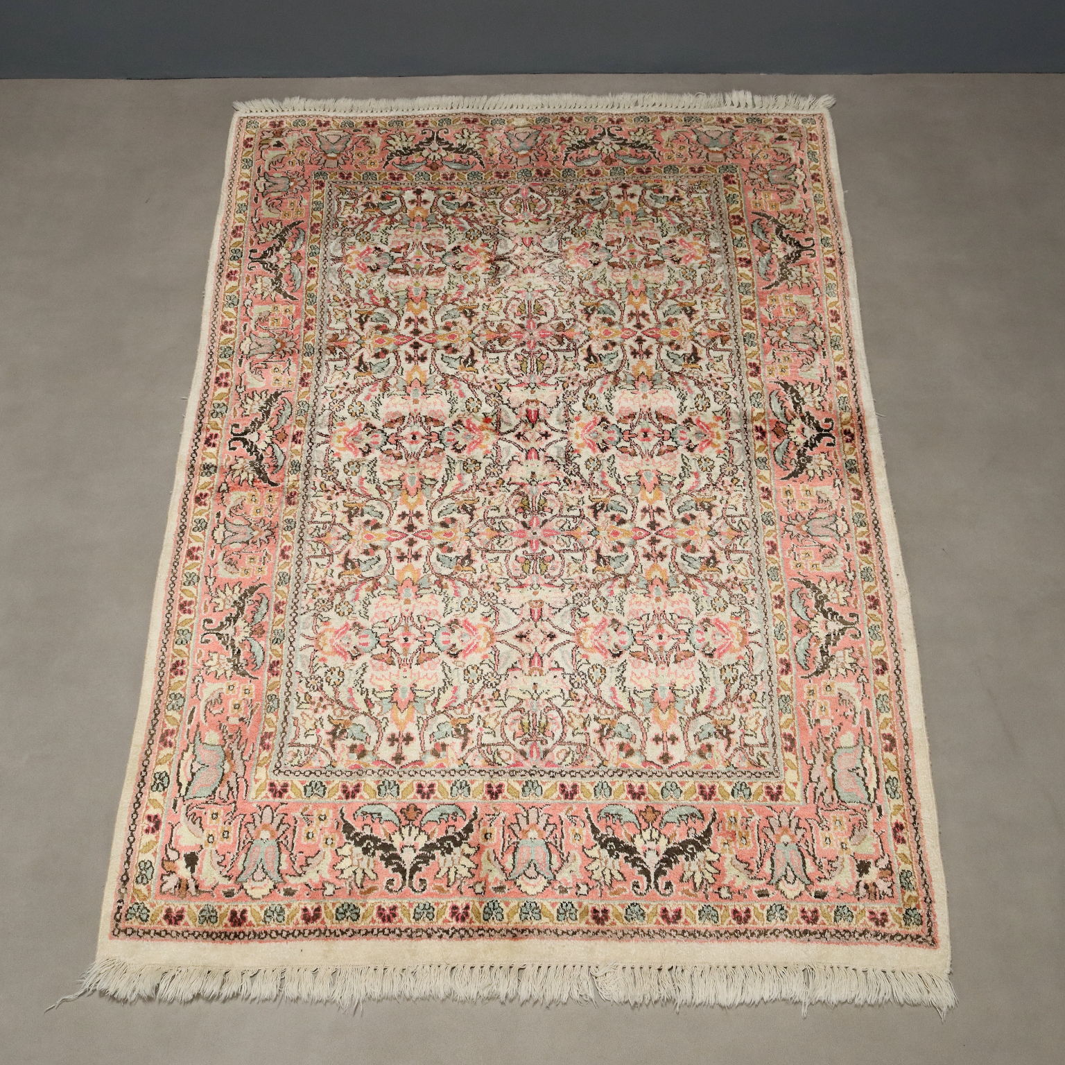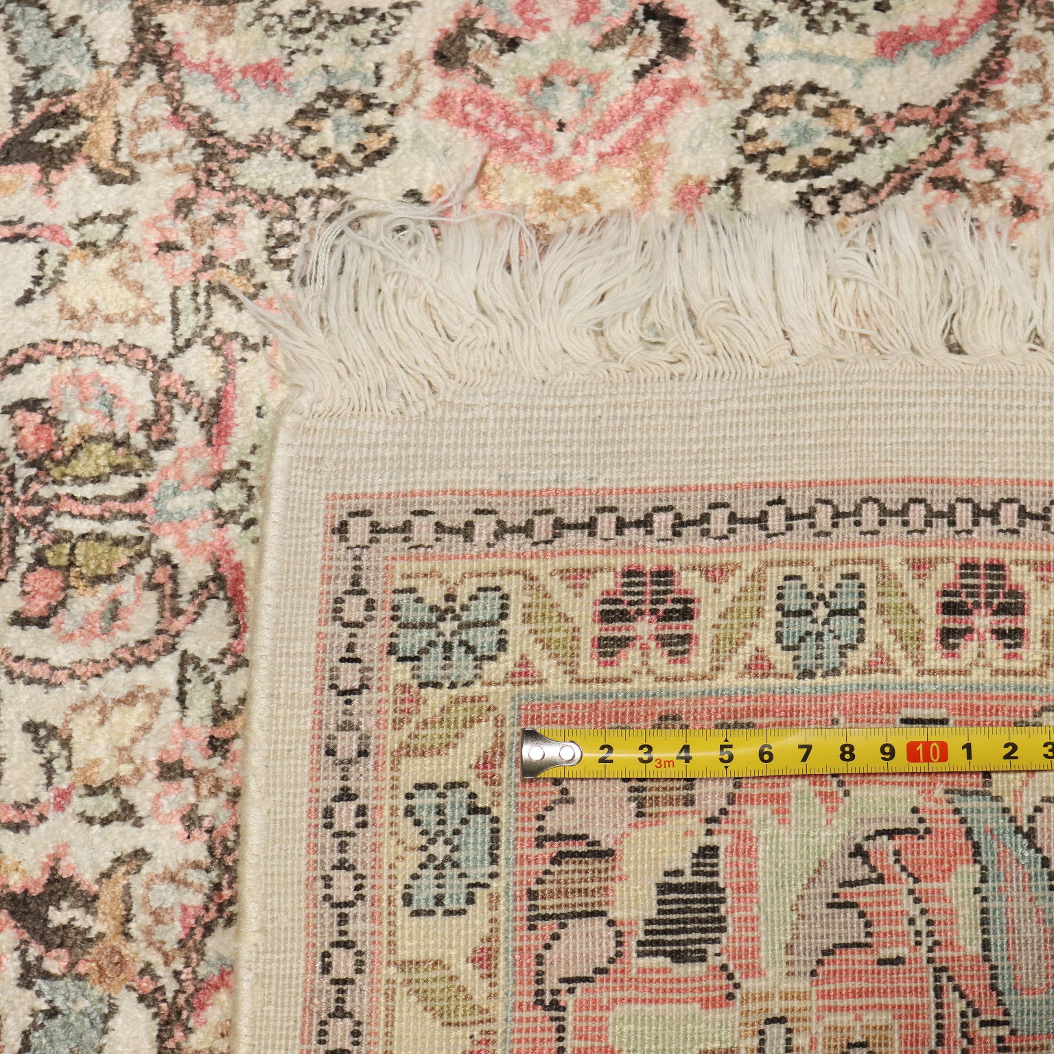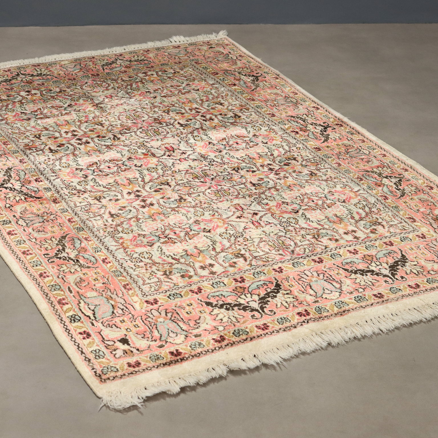 Tappeto Srinagar in cotone, lana e seta, nodo fine, fabbricazione manuale.