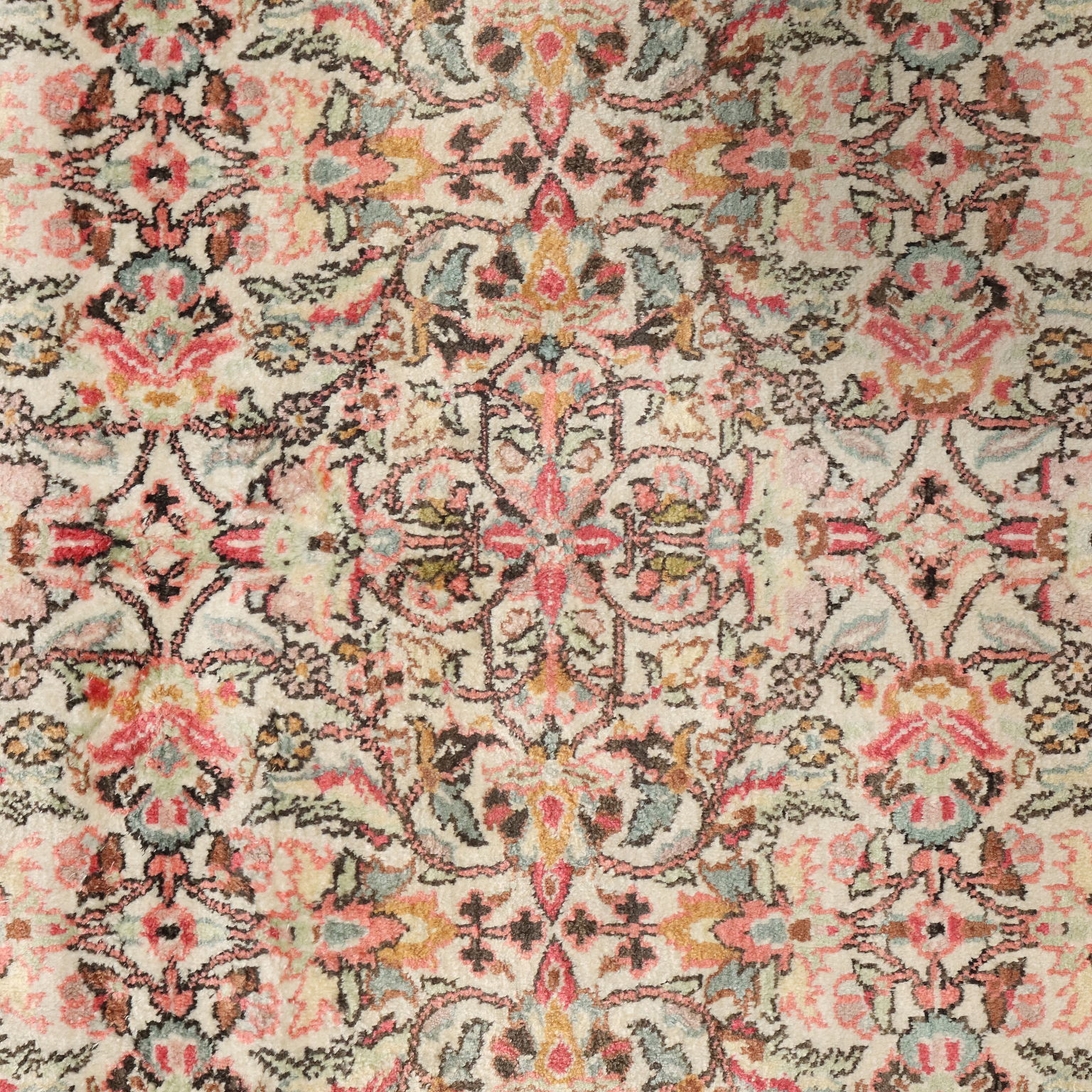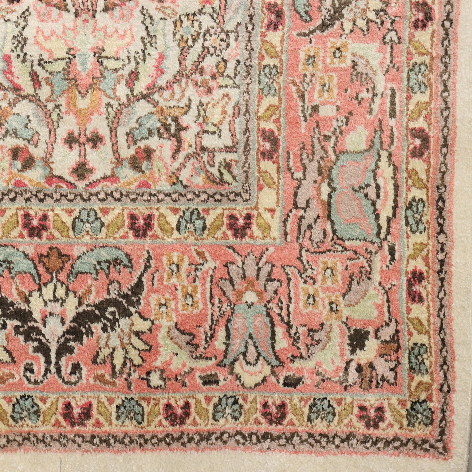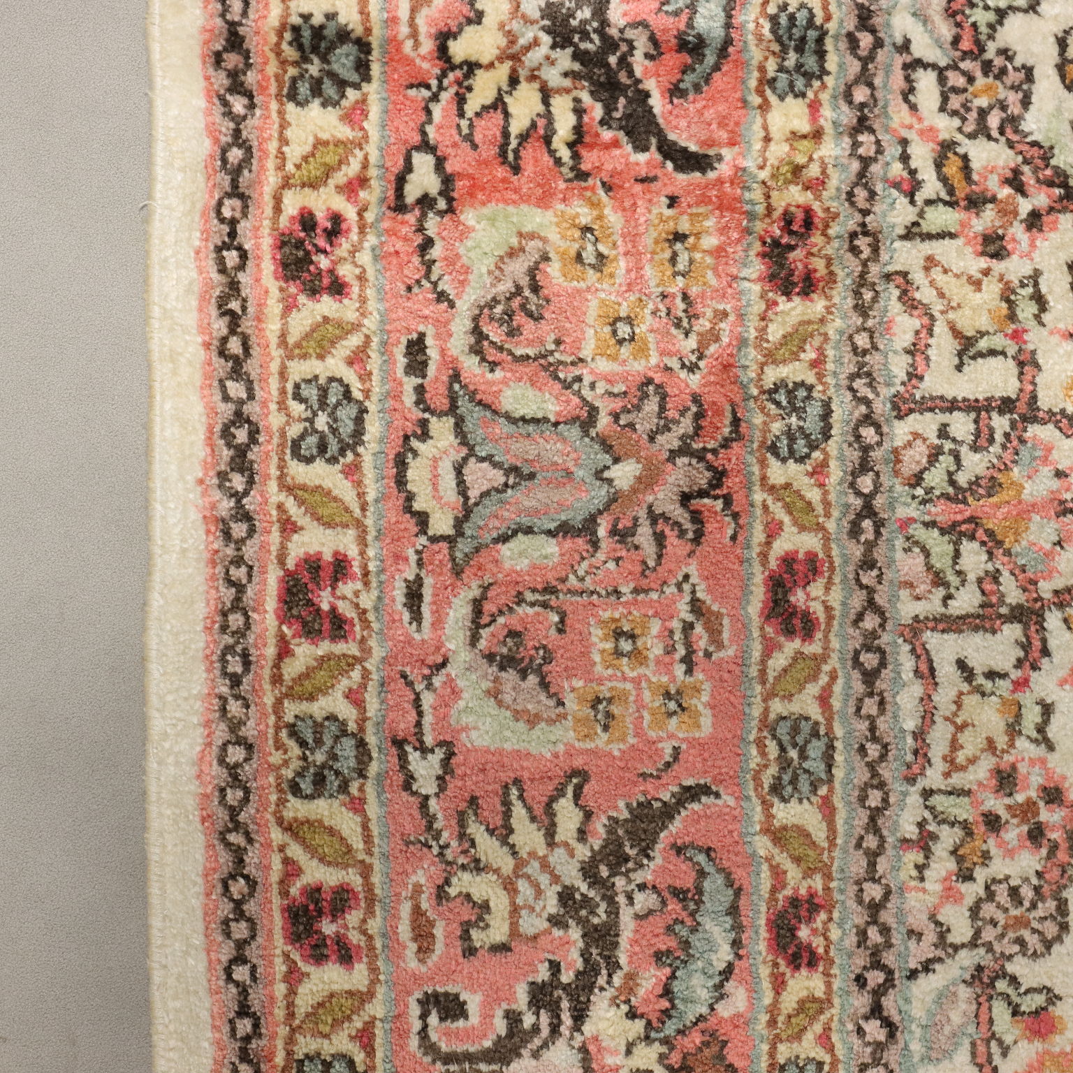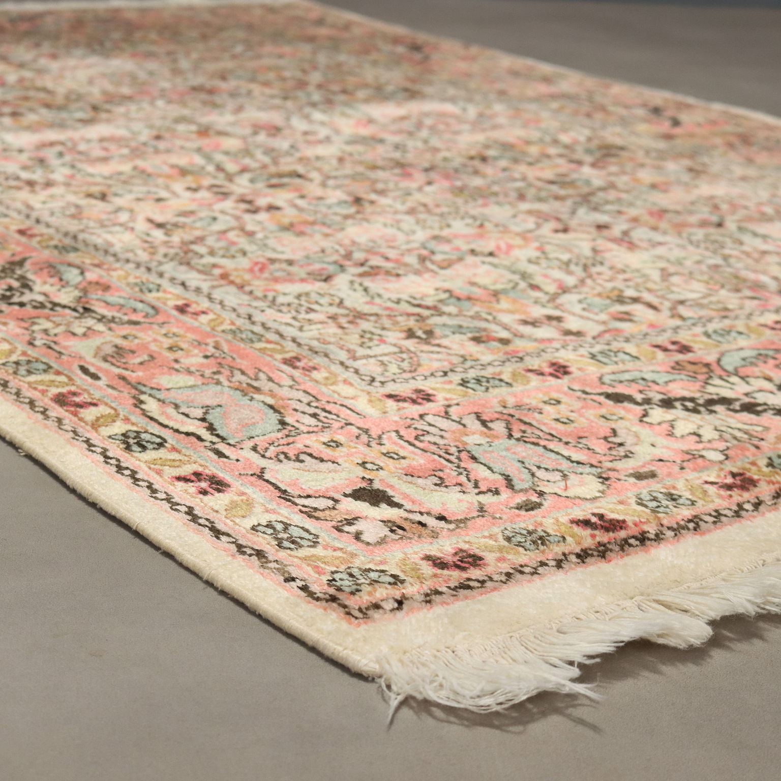 Tappeto Srinagar in cotone, lana e seta, nodo fine, fabbricazione manuale.