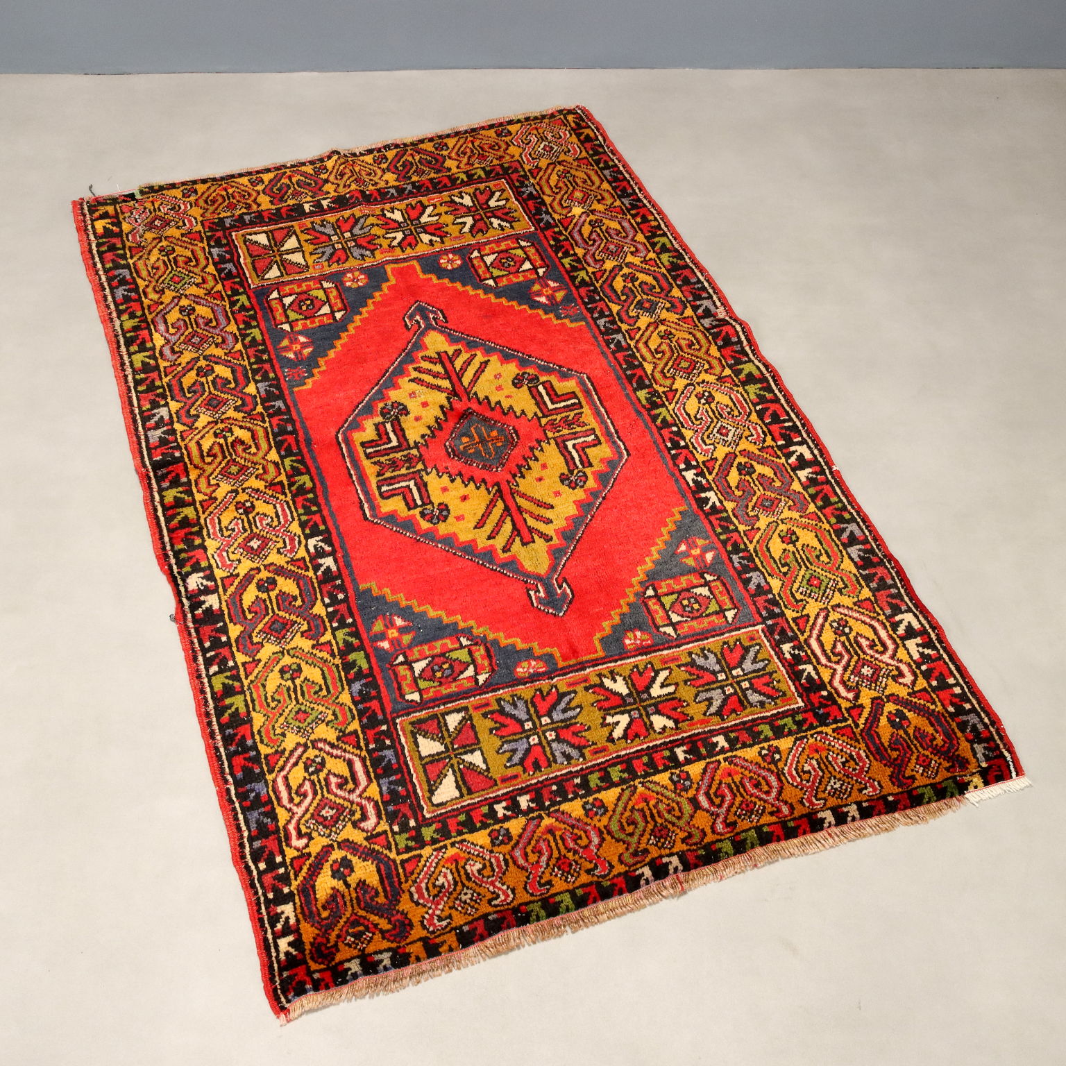 Tappeto Ortakoy in lana, nodo grosso, fabbricazione manuale.