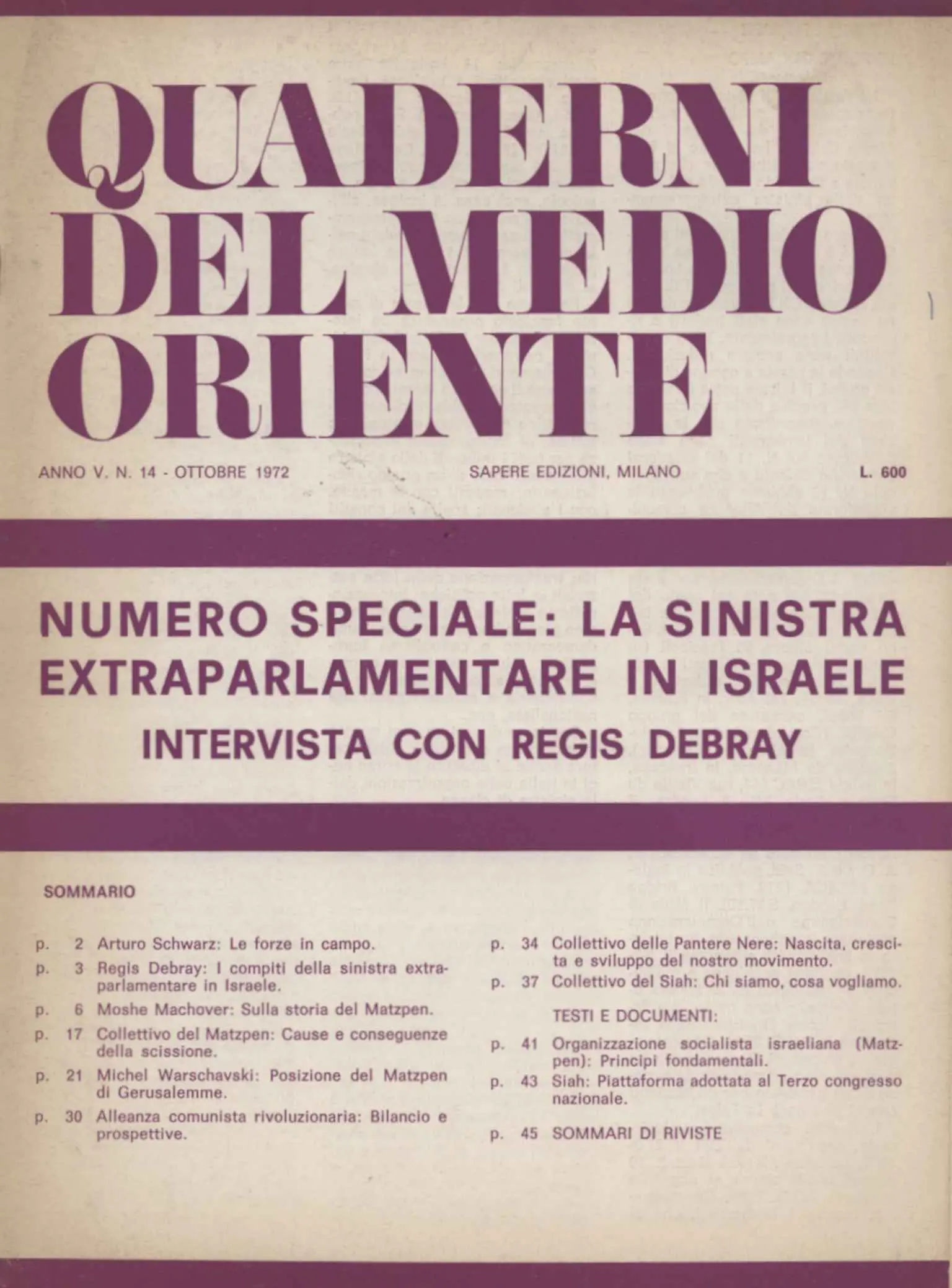 Quaderni del Medio Oriente (n. 14 ottobre 1972) - Numero speciale: La sinistra extraparlamentare in Israele