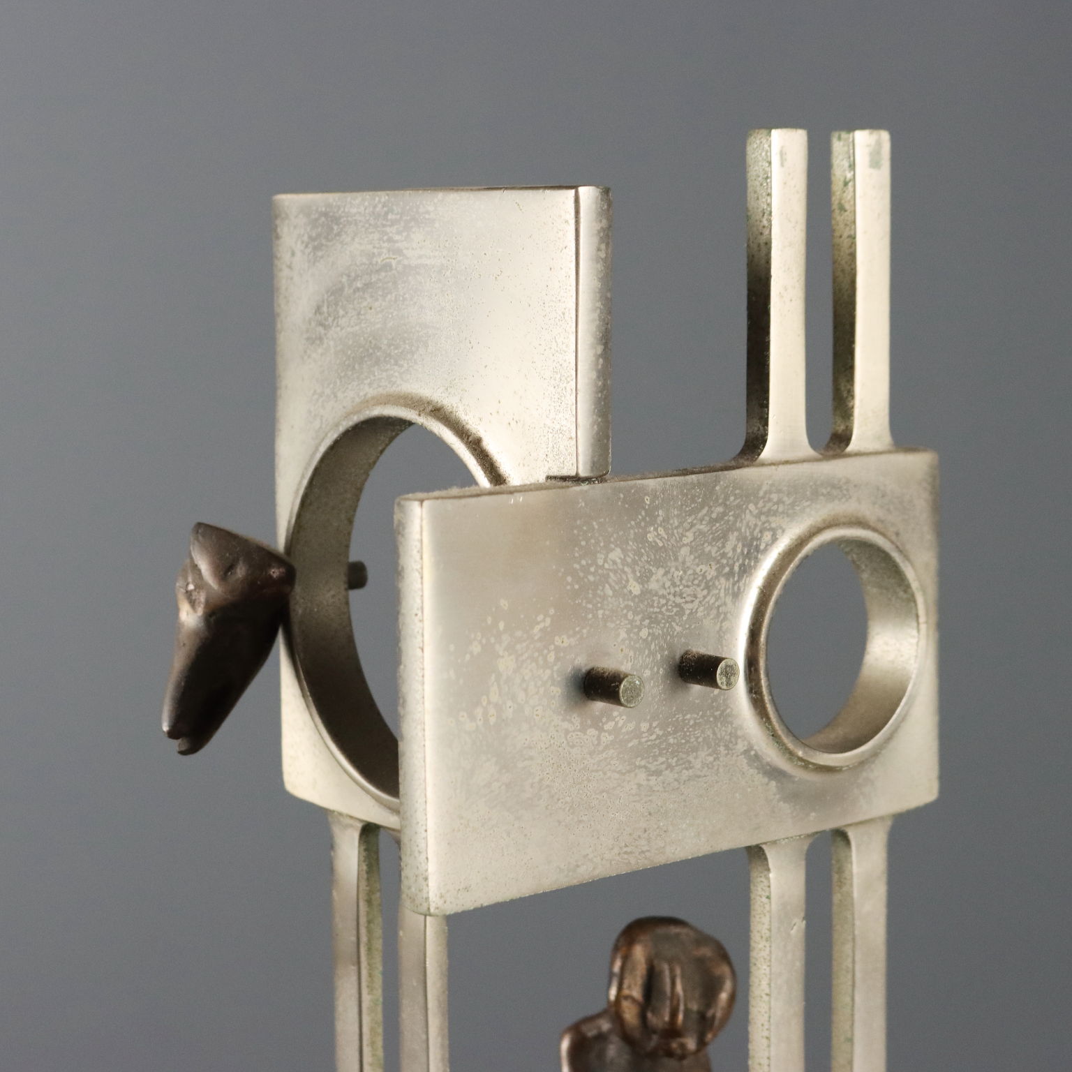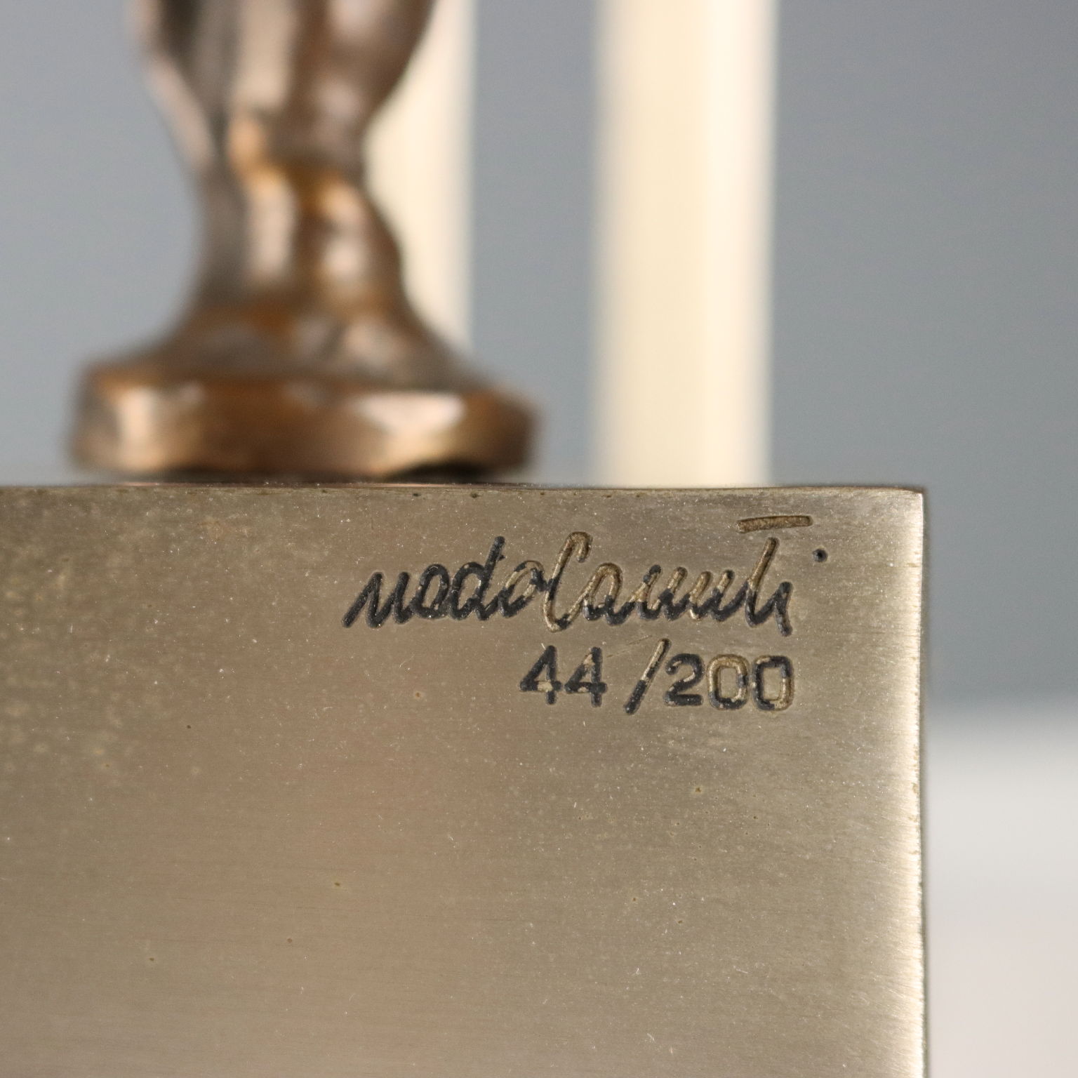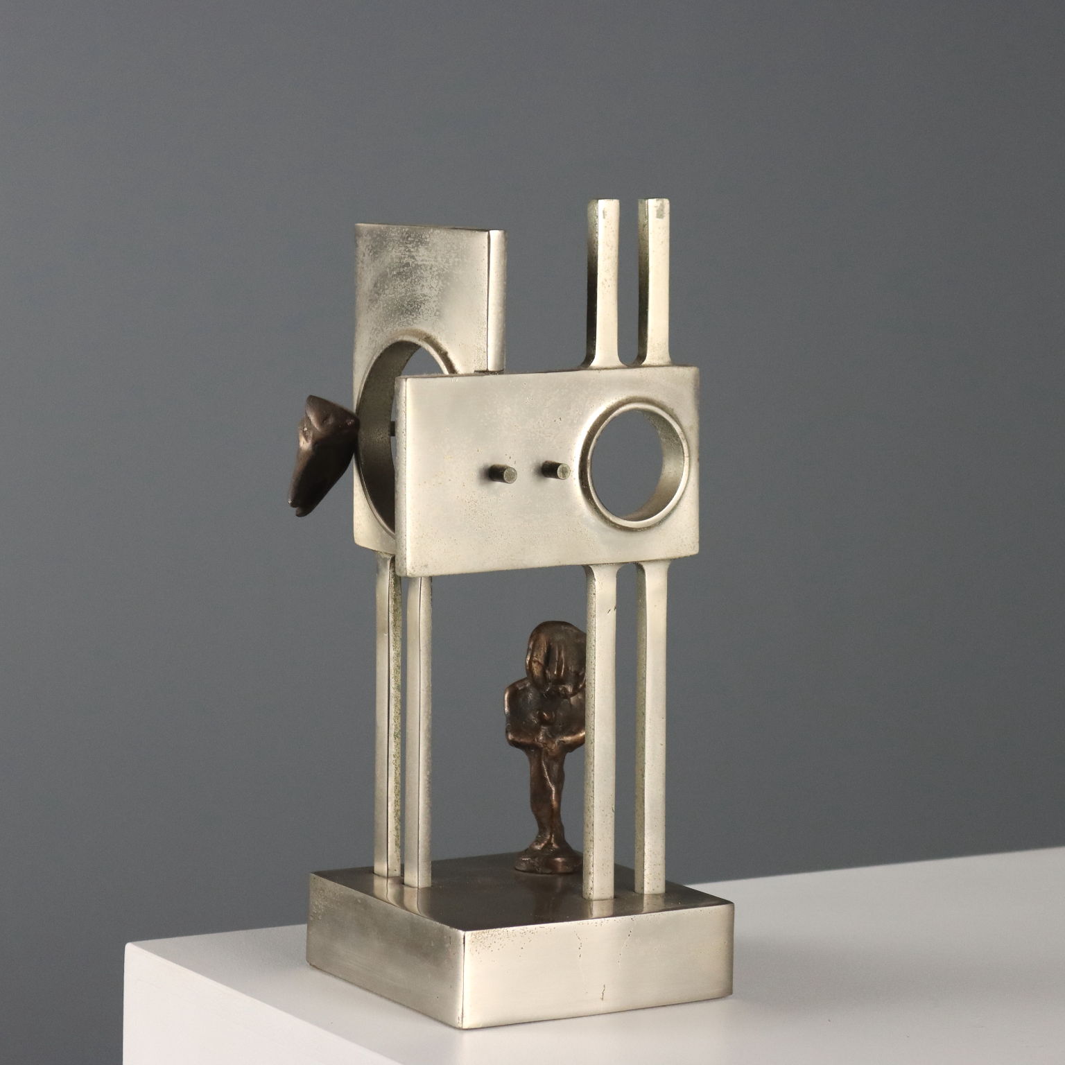 Scultura in bronzo inserita in struttura di acciaio. Senza titolo. Numero di tiratura 44/200 e firma dell'autore incisi sul lato della base.