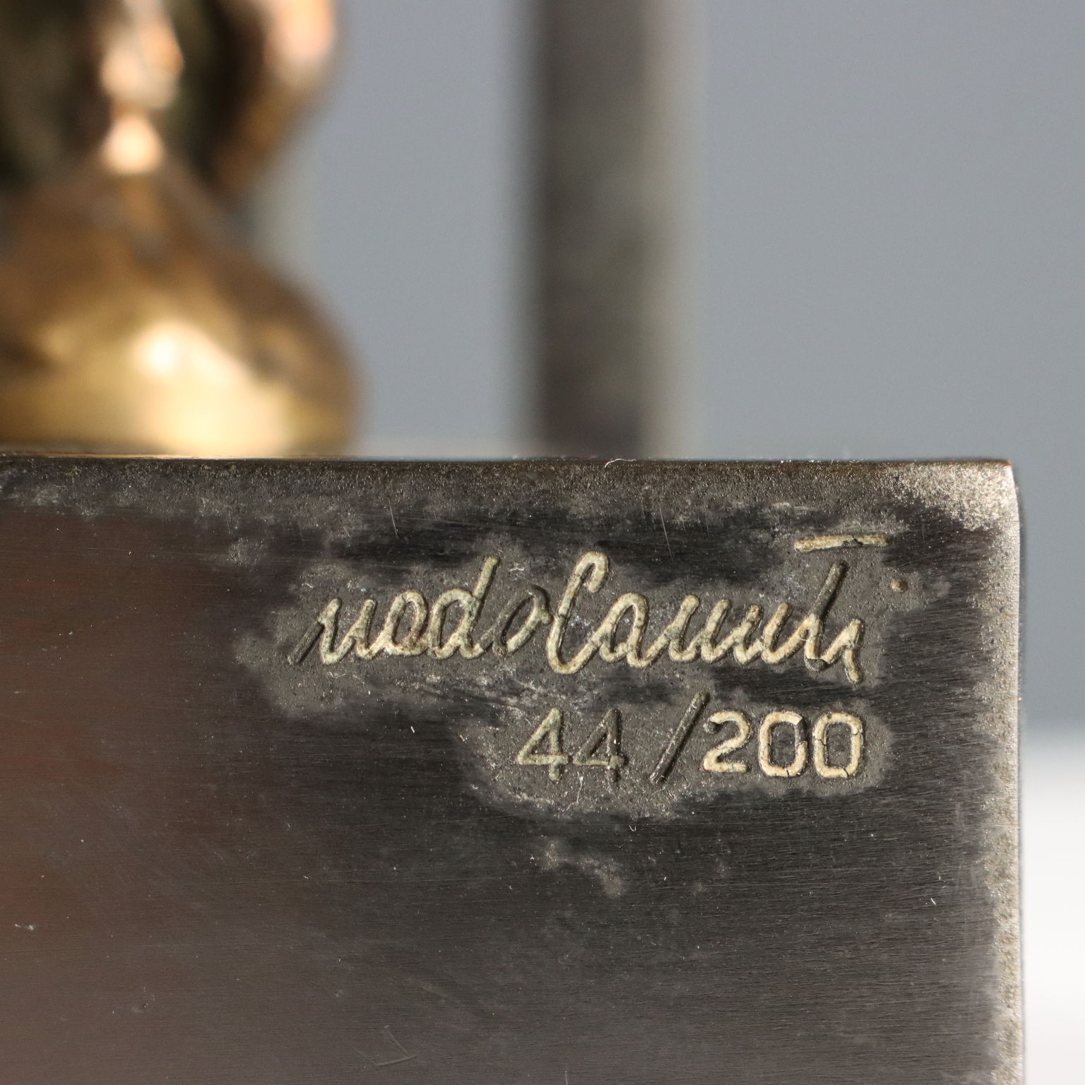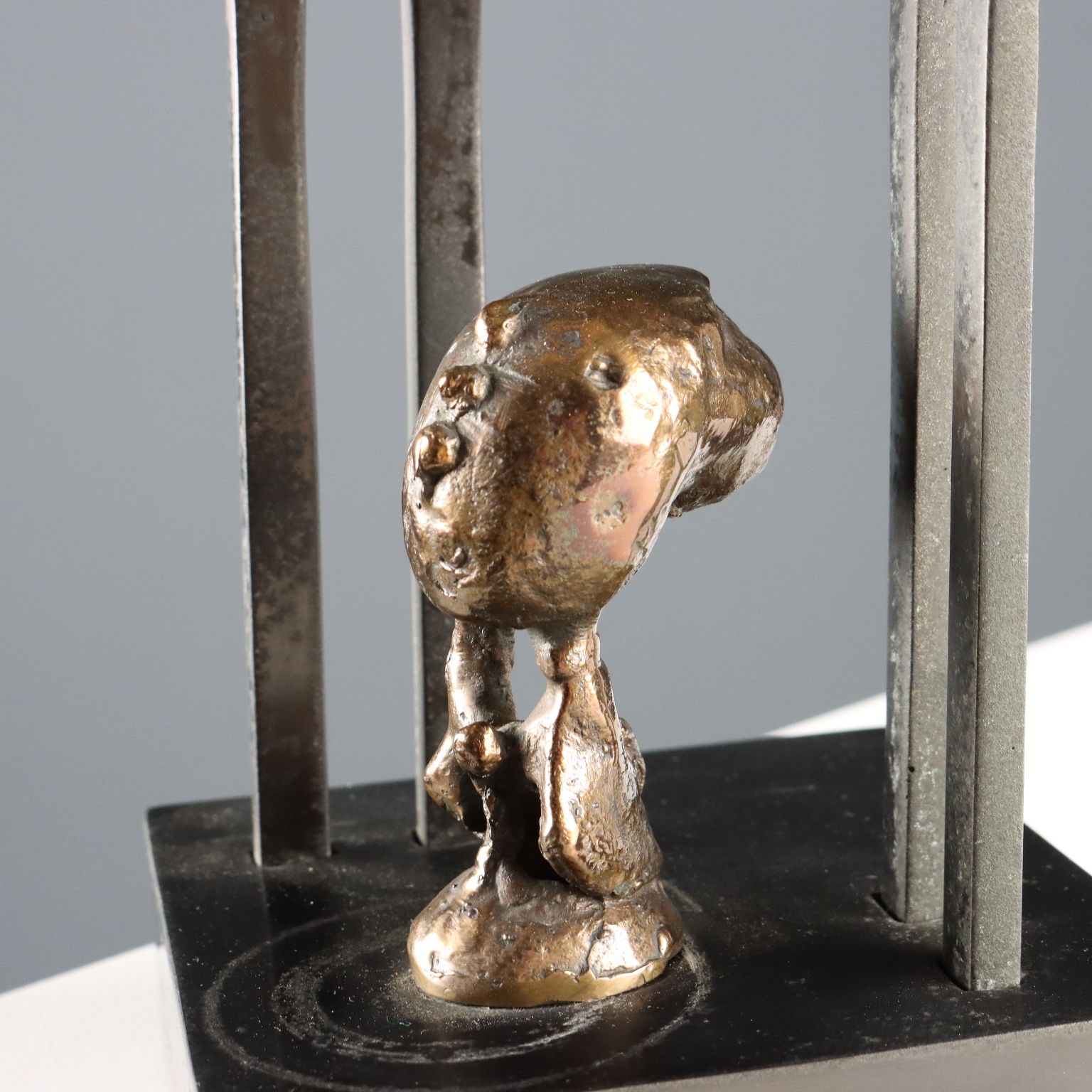 Scultura in bronzo inserita in struttura di acciaio brunito. Senza titolo. Numero di tiratura 44/200 e firma dell'autore incisi sul lato della base.