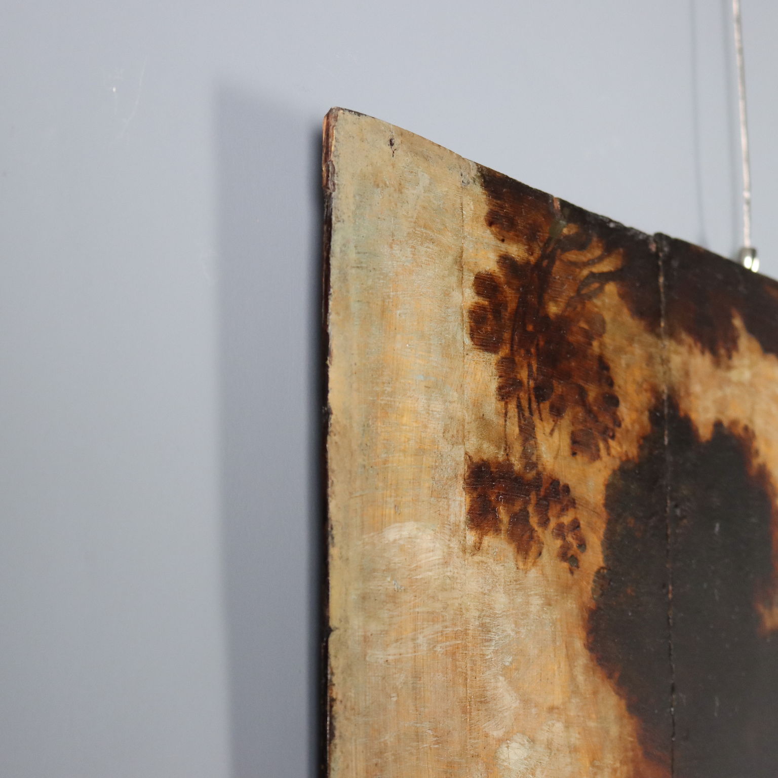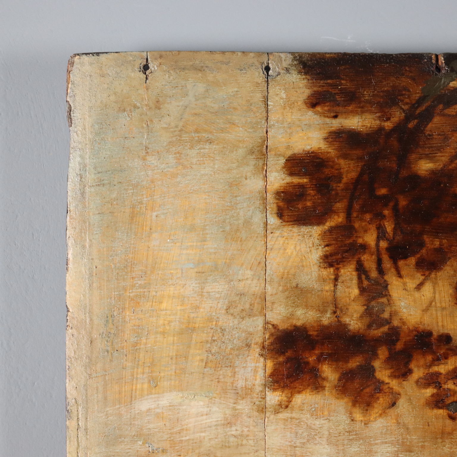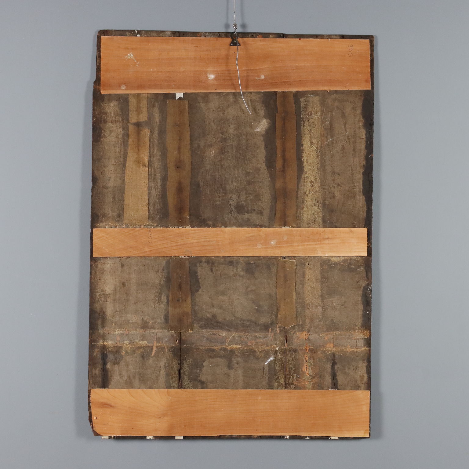 La pittura è l'arte che consiste nell'applicare dei pigmenti a un supporto come la carta, la tela, la seta, la ceramica, il legno, il vetro o un muro. Essendo i pigmenti essenzialmente solidi, è necessario utilizzare un legante, che li porti a uno stadio liquido, più fluido o più denso, e un collante, che permetta l'adesione duratura al supporto. Chi dipinge è detto pittore o pittrice. Il risultato è un'immagine che, a seconda delle intenzioni dell'autore, esprime la sua percezione del mondo o una libera associazione di forme o un qualsiasi altro significato, a seconda della sua creatività, del suo gusto estetico e di quello della società di cui fa parte.Specifica tecnica: Olio su Tavola