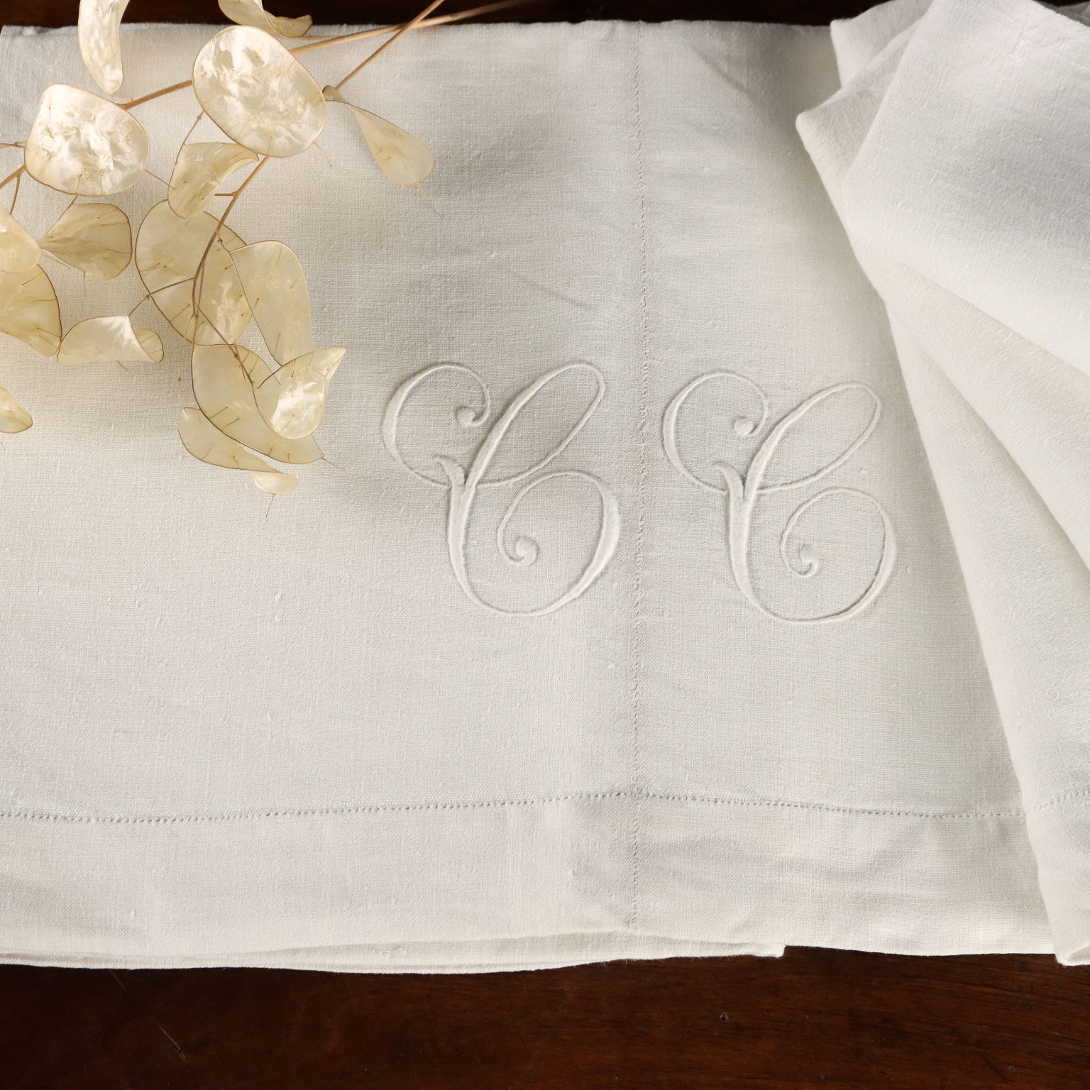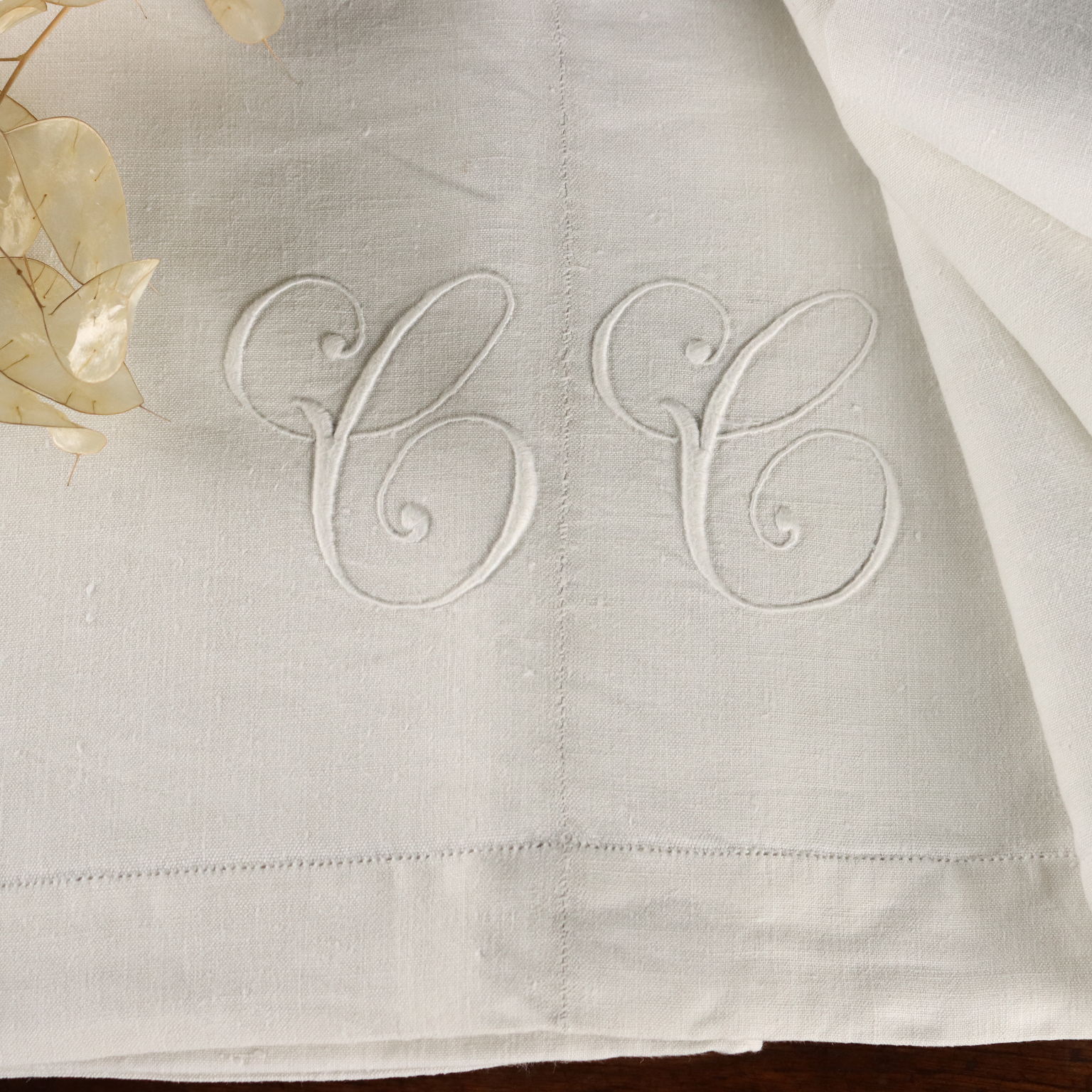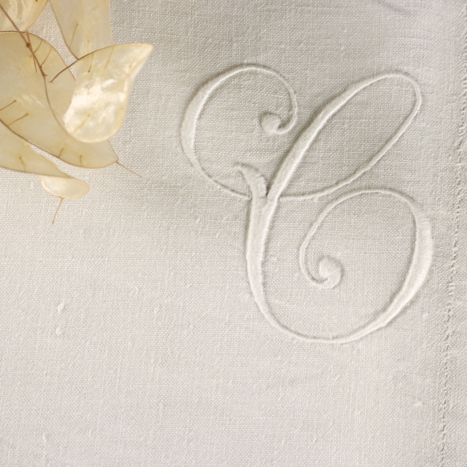 Lenzuolo in lino, cifrato.