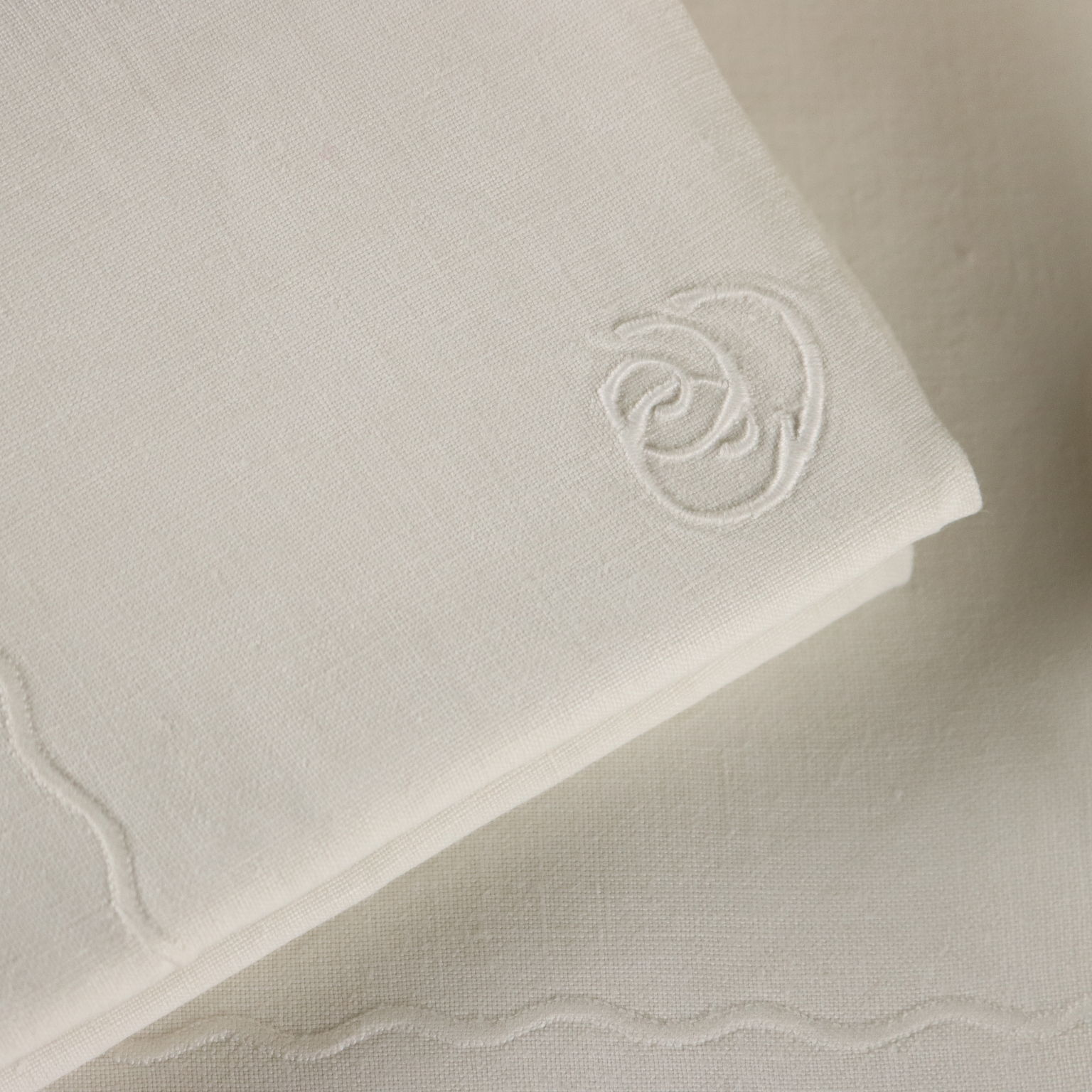 Lenzuolo matrimoniale con due federe in lino, cifrato , lavorazione a punto pieno.