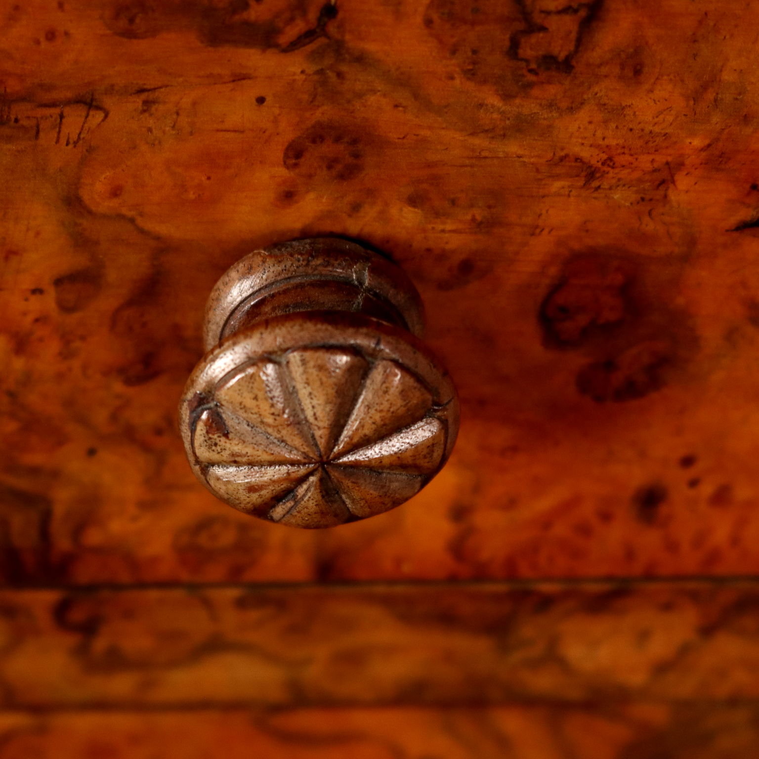 Il legno di noce proviene dalla pianta il cui nome botanico è juglans regia, originaria probabilmente dell'Oriente ma molto comune in Europa. Di colore marrone chiaro o scuro, è un legno duro dalla bella venatura, molto usato nei mobili antichi. Fu l'essenza principale in Italia per tutto il Rinascimento e in seguito ebbe buona diffusione in Europa, specialmente in Inghilterra, fino all'avvento del mogano. Venne impiegato per mobili in massello e talvolta intagli e intarsi, l'unico suo grande limite è che soffre molto il tarlo. In Francia si utilizzò largamente più che altro in provincia. Nella seconda metà del '700 il suo impiego diminuì sensibilmente perché gli si preferirono il mogano e altri legni esotici.Materiale: Radica di Noce
