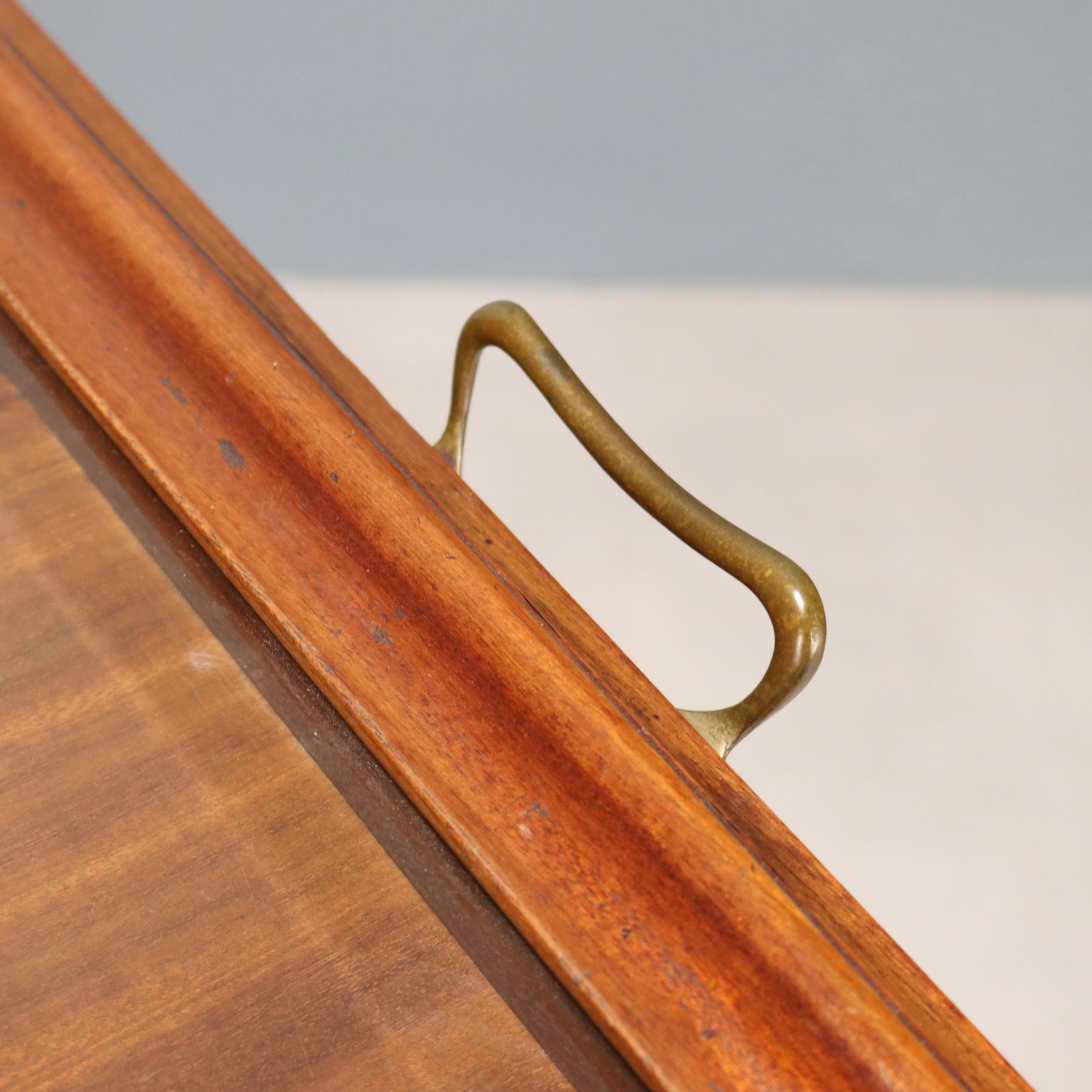 Si tratta di uno dei legni più pregiati e ricercati in ebanisteria. Fu scoperto in America Centrale intorno al 1600 e cominciò a essere importato in Inghilterra nel '700. Molto apprezzato per la sua durezza e indistruttibilità, divenne diffusissimo in seguito al blocco delle esportazioni di noce dalla Francia nel 1720 e alla conseguente eliminazione dei dazi di importazione inglese sul mogano dalle colonie in America e India. La versione più preziosa proviene da Cuba, ma diventò costosissima. Sul finire del '700 cominciò a essere impiegato anche in Francia nei mobili Luigi XVI, Direttorio e Impero, la sua diffusione declinò a partire da quando Napoleone, nel 1810, ne proibì l'importazione. Venne generalmente impiegato nella fabbricazione di mobili eleganti, per le sue caratteristiche e la bella venatura.Materiale: Vetro