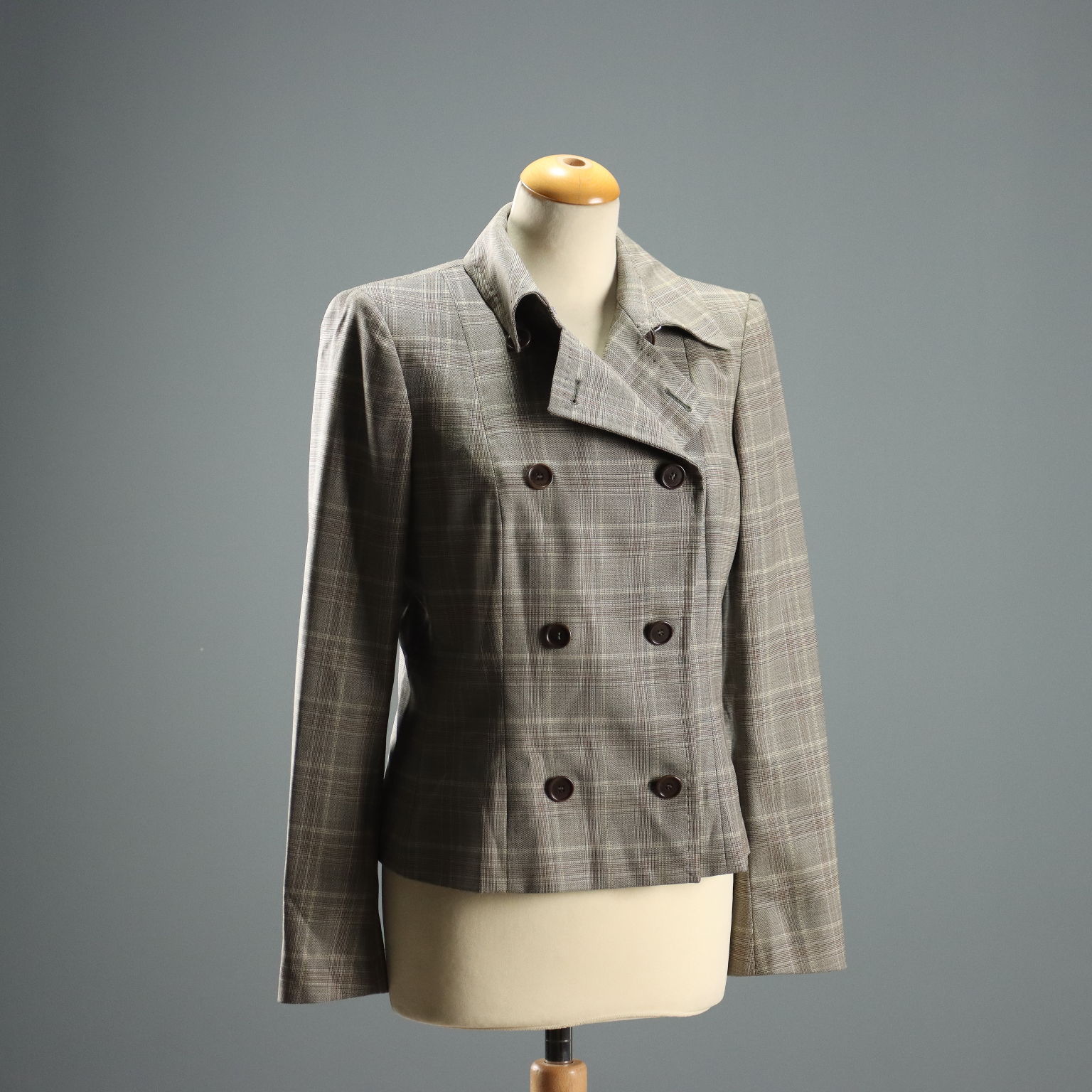 Blazer in lana a lavorazione principe di Galles con abbottonatura doppiopetto. Larghezza spalle: 40 cm. Lunghezza manica: 62 cm. Lunghezza totale: 55 cm.