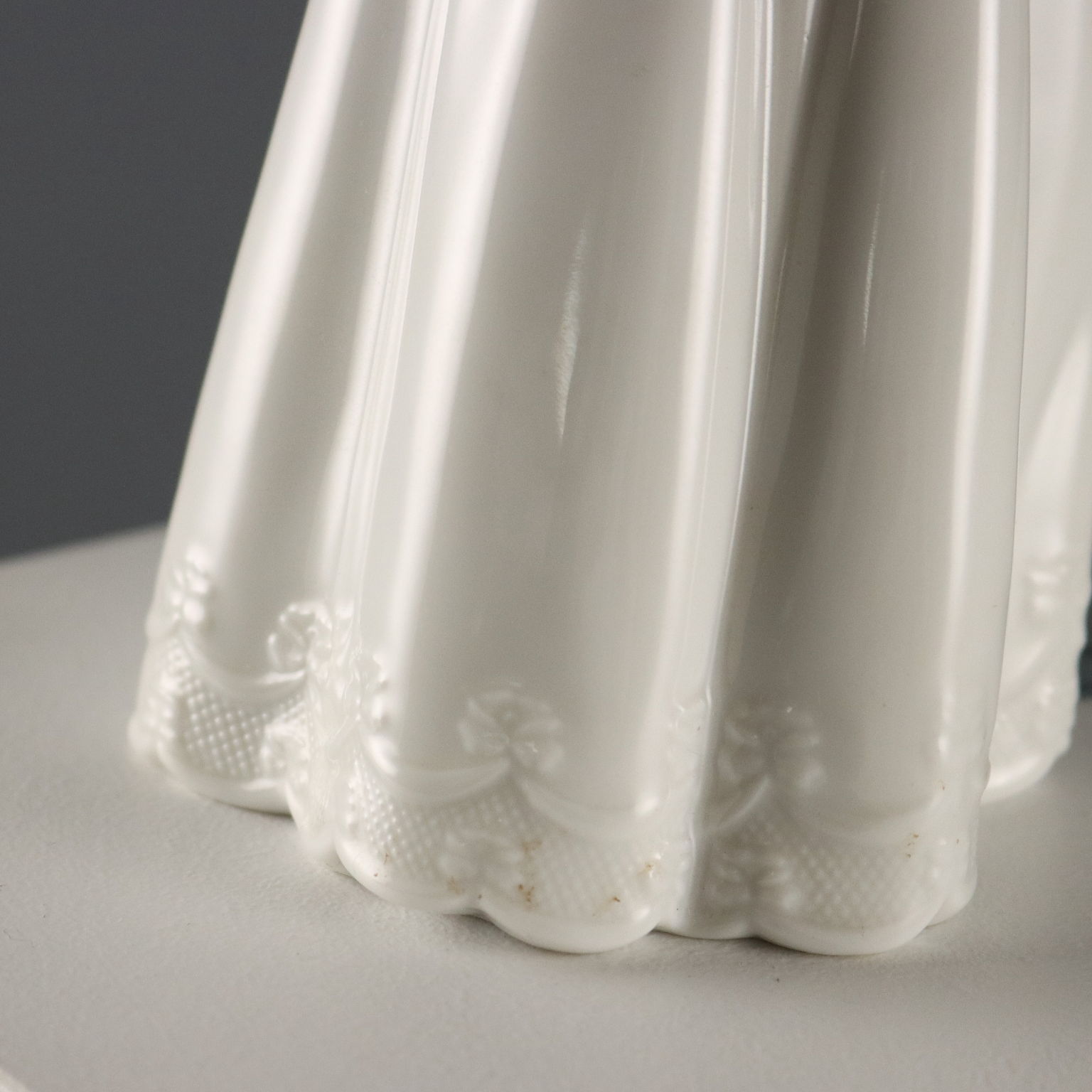 Scultura in porcellana raffigurante coppia di sposini. Marchio della manifattura e numero di serie sotto la base.