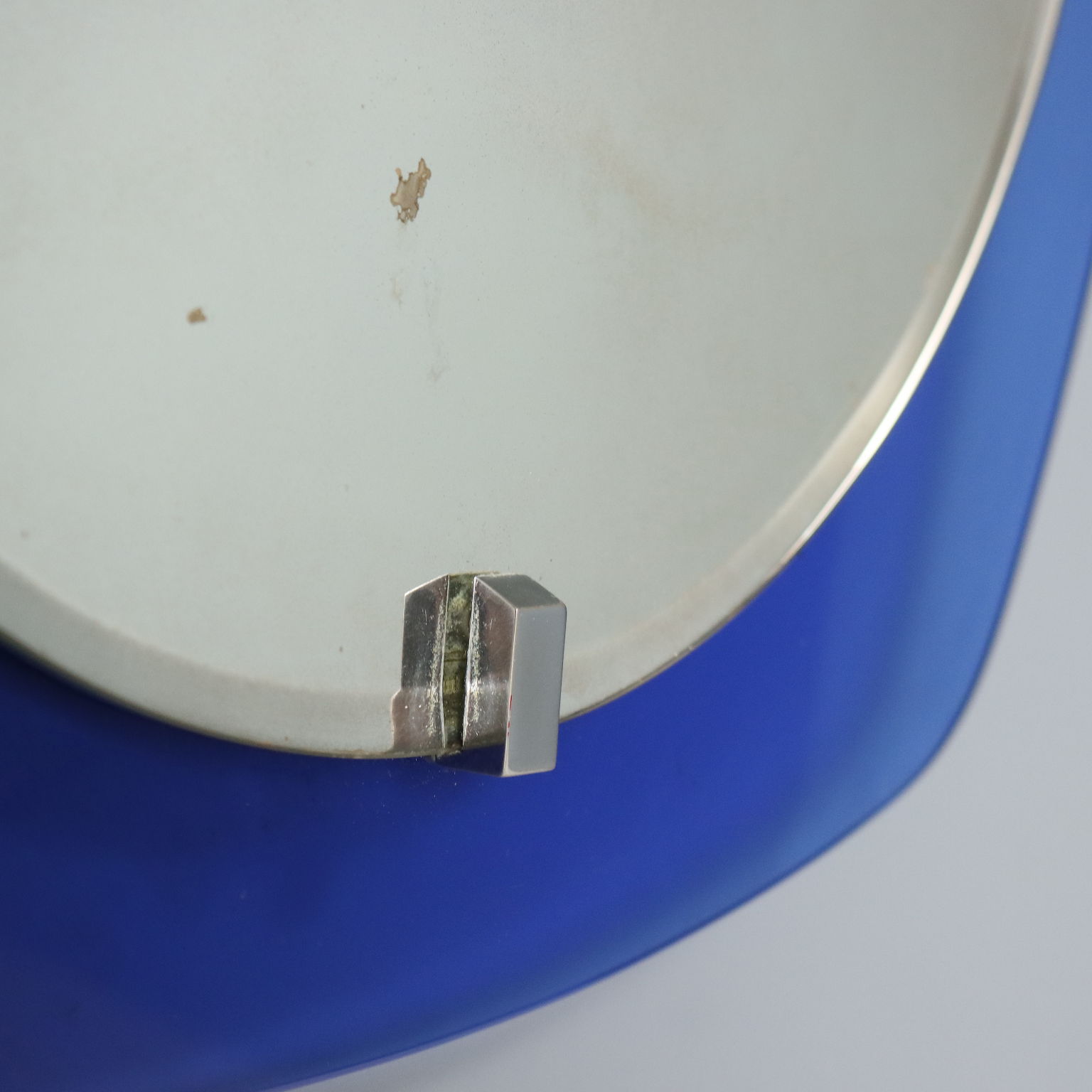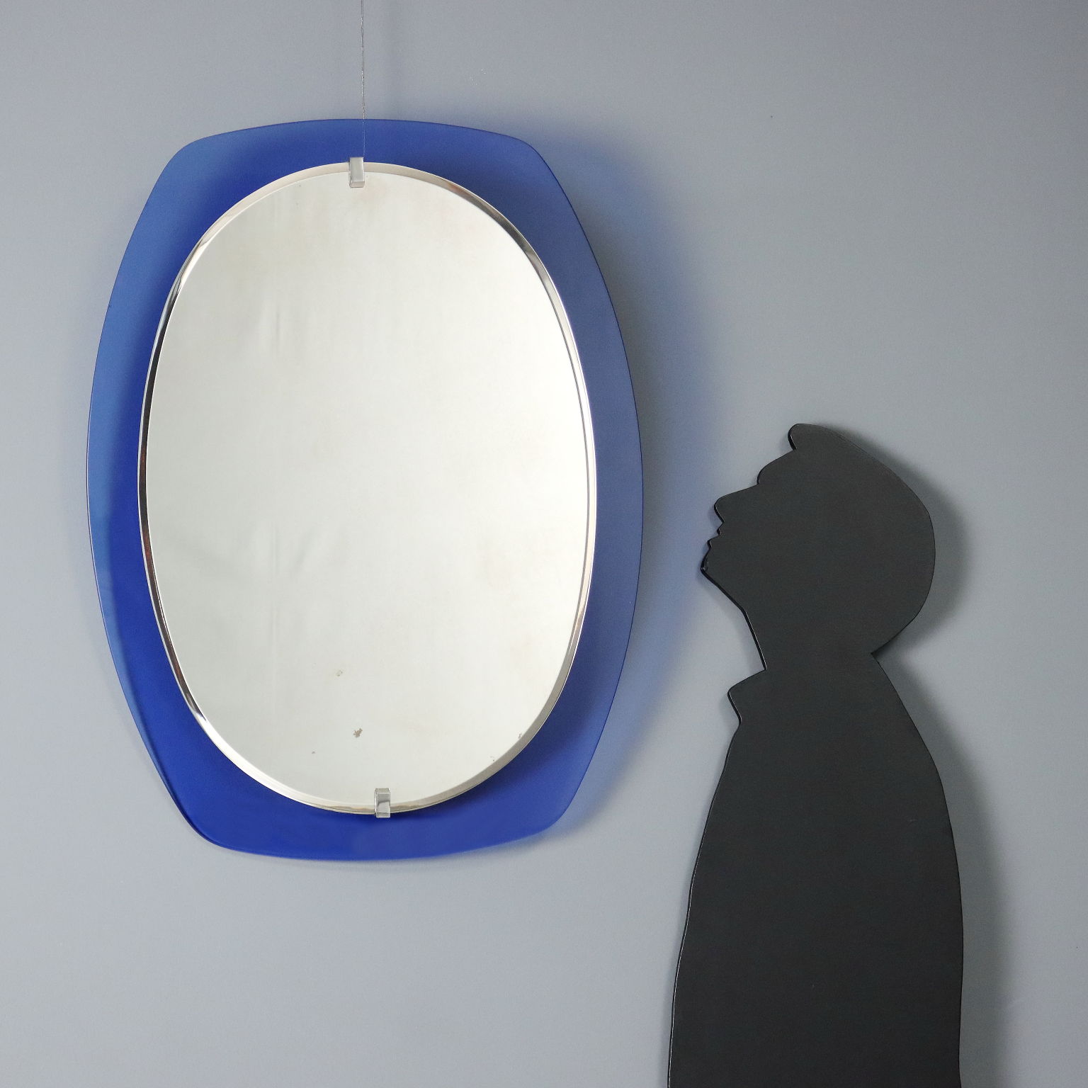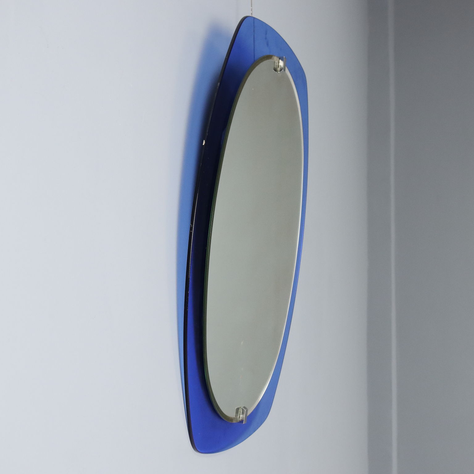 Specchio vintage di forma ovale con cornice in vetro blu.