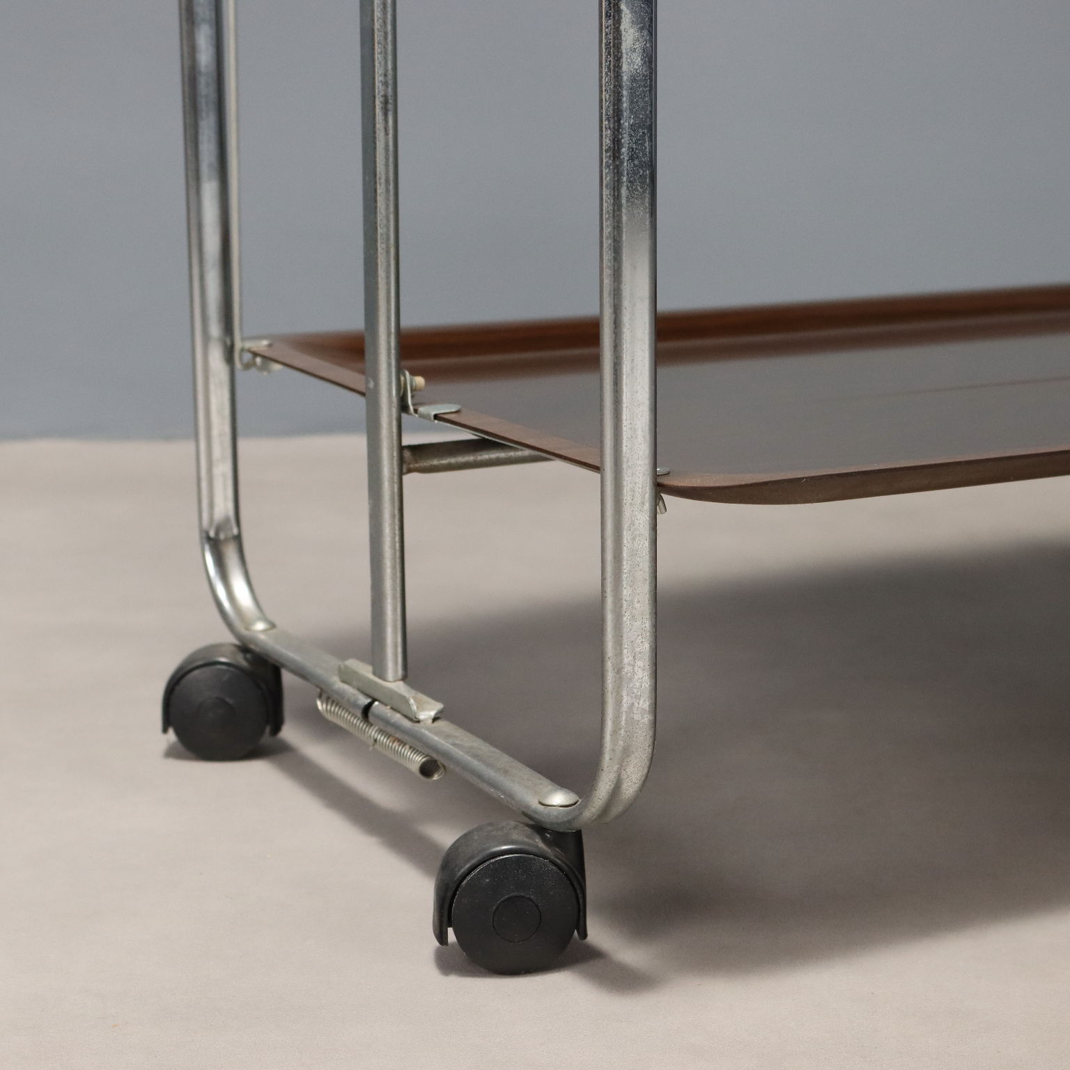 Carrello di servizio portavivande con rotelle, in metallo con doppio piano marrone.