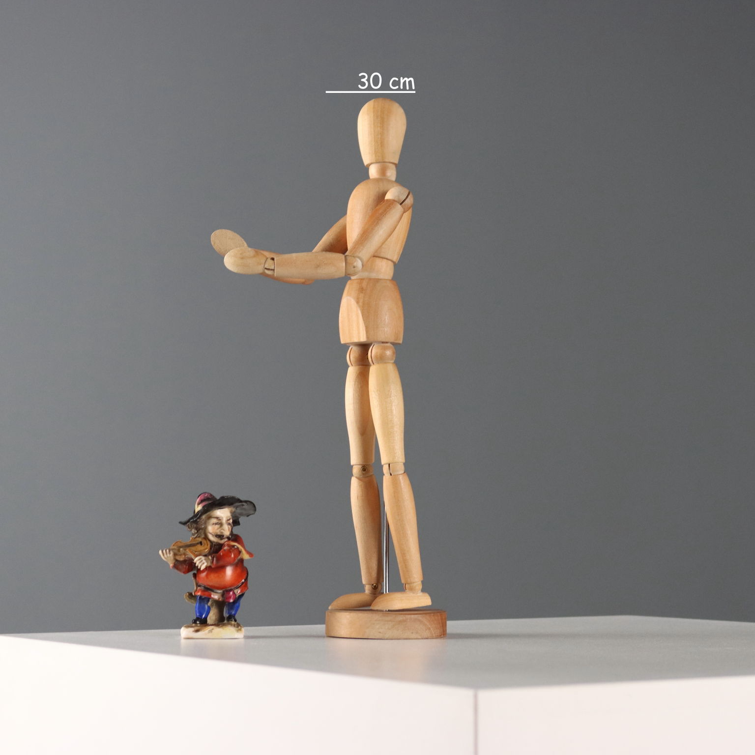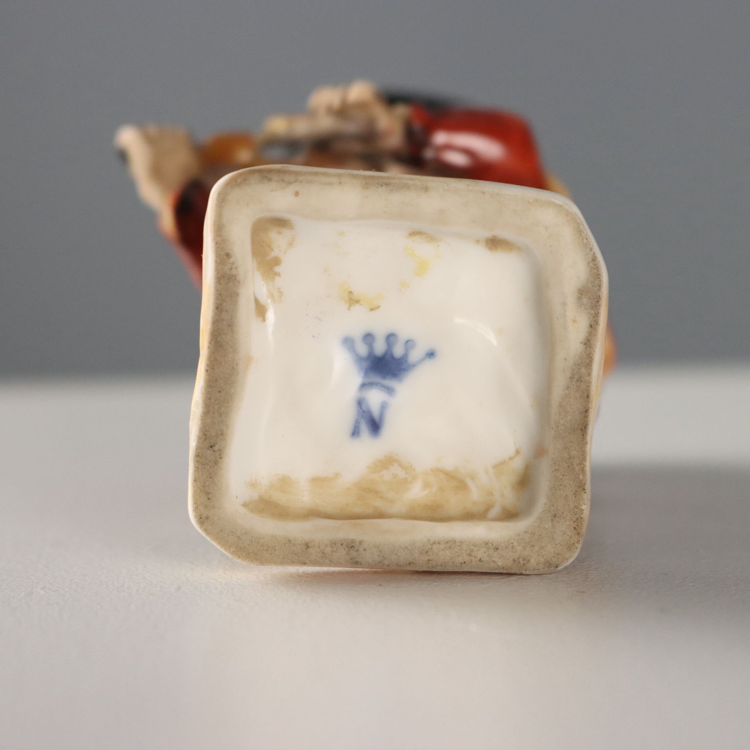 Statuina in porcellana policroma raffigurante Caramogio suonatore di violino. Sotto la base marchio della manifattura in blu sottosmalto.