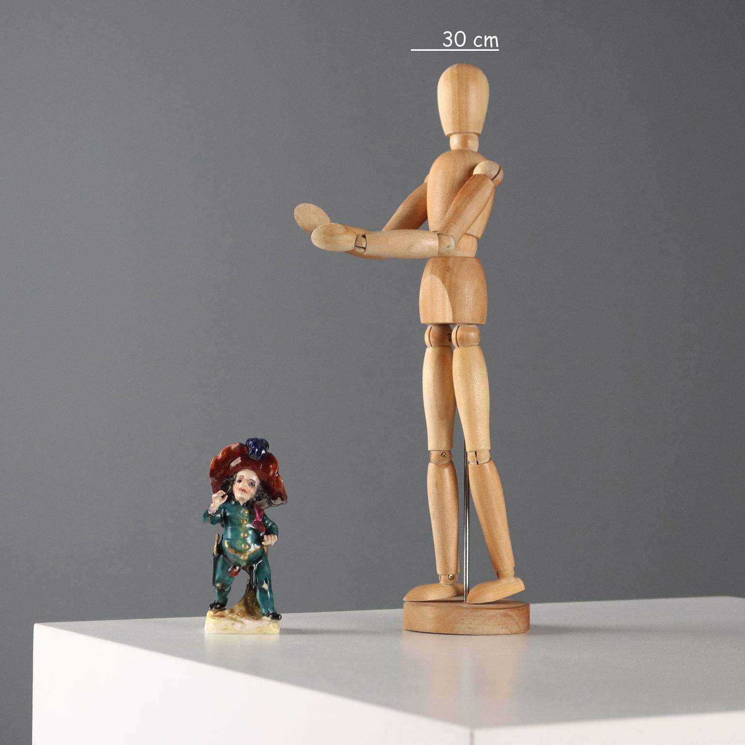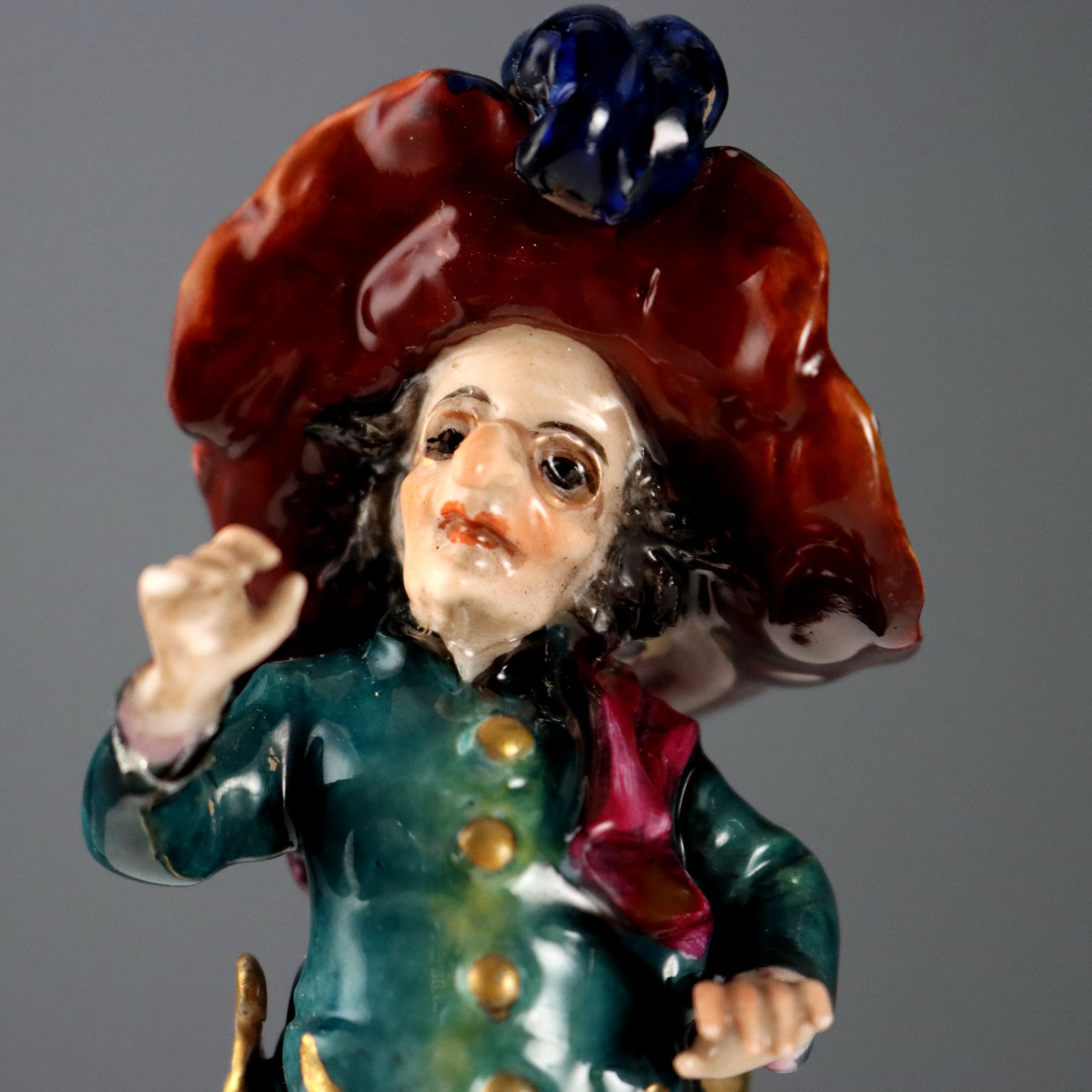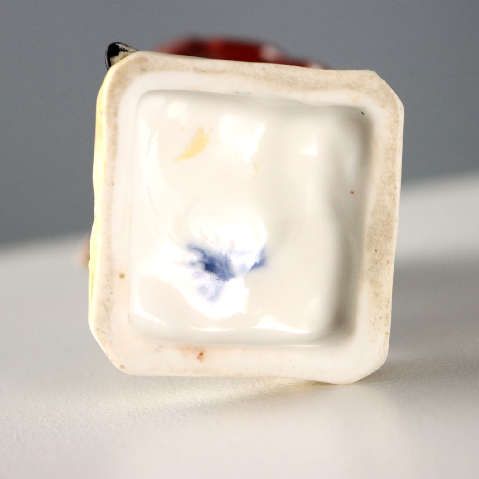 Statuina in porcellana policroma raffigurante Caramogio caricatura di gendarme. Sotto la base marchio della manifattura in blu sottosmalto.