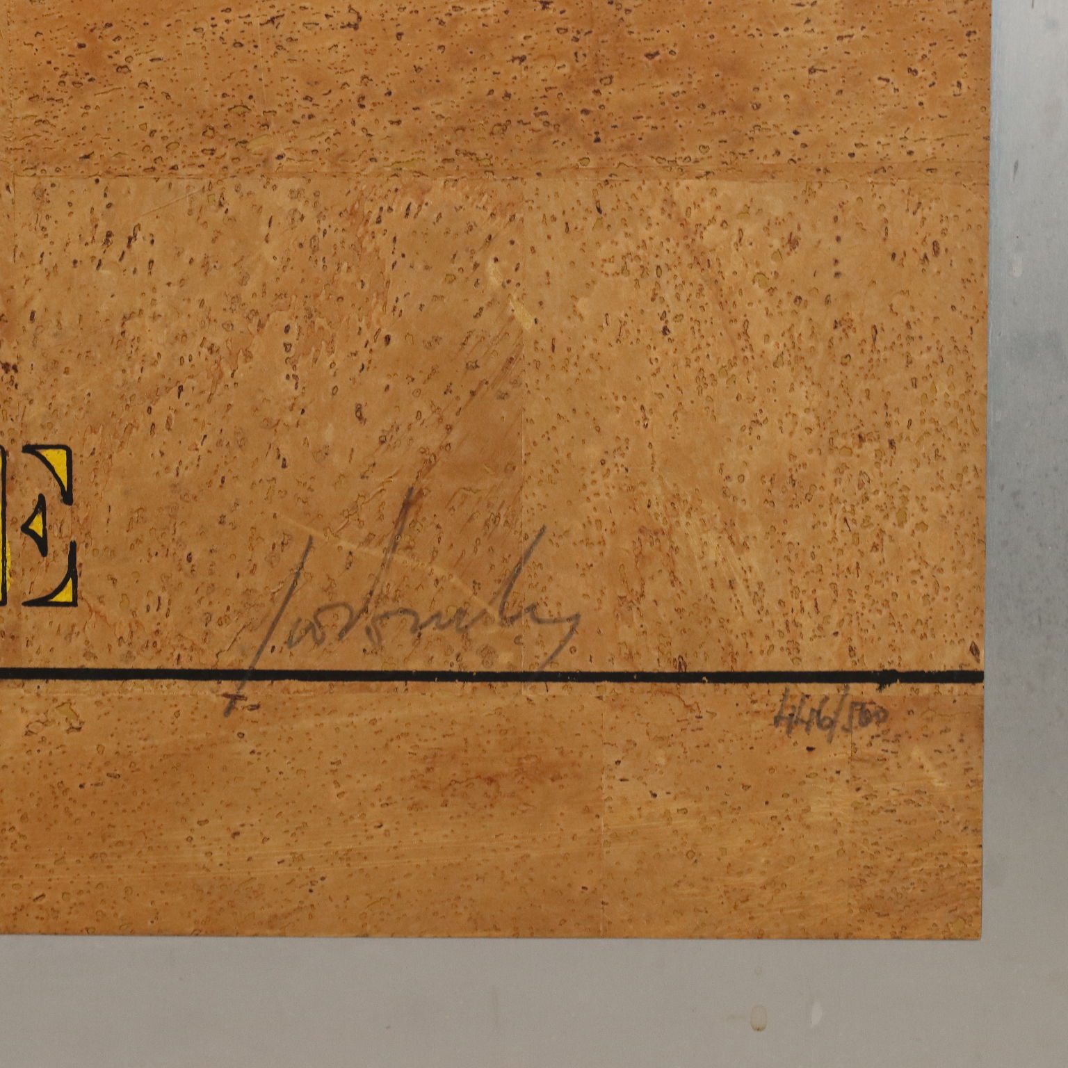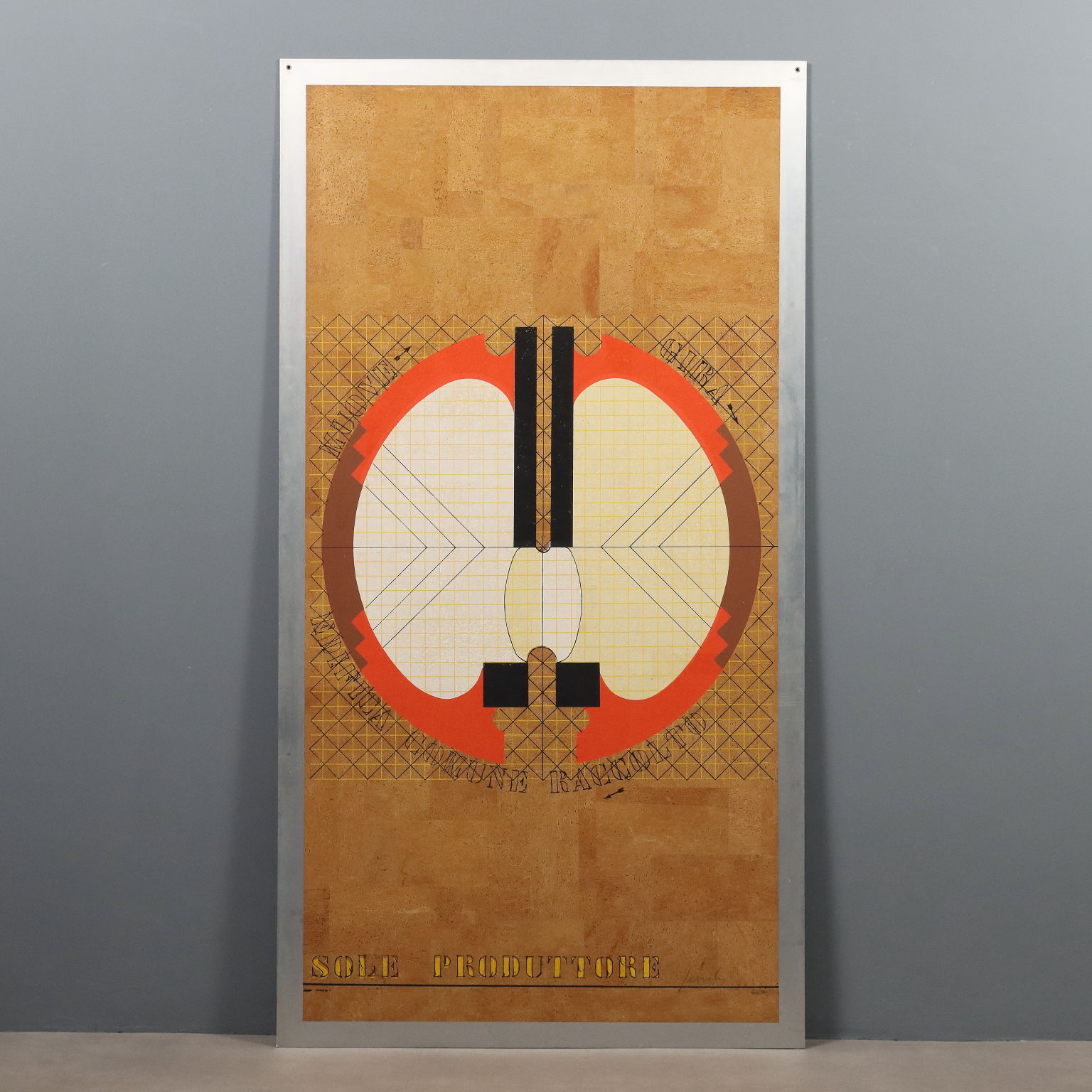 Serigrafia, applicata su lastra di metallo. Firmata in basso a destra, il titolo in basso. Edizione 446/500. Il Sole è una tematica molto cara a Giò Pomodoro fin dagli anni '50, tematica che l'artista non ha mai abbandonato, sviluppandolo in particolare dalla seconda metà degli anni '70 fino a pochi anni prima della sua morte, quando, nel 2000, ha donato alla Città di Genova un Sole monumentale in marmo bianco, collocato proprio all'imboccatura del porto, sul Ponte dei Mille. Il Sole Produttore è la rappresentazione metaforica dello sfruttamento equo da parte della società della forza generatrice del sole. Appassionato di astronomia, geometria e poesia, Gio' Pomodoro è da sempre stato affascinato dal potenziale vitale e simbolico dell'immagine dell'astro. In queste opere, l'artista lo rappresenta mediante una forma circolare stilizzata ì, che viene spezzata per accentuare le potenzialità delle forme geometriche elementari (il cerchio, il quadrato, il triangolo) ad aprirsi a tensioni dinamiche differenti. Su queste forme basilari, Pomodoro inserisce poi all' intorno scritte costituite da parole che rimandano a concetti referenziali, come reale, possibile, collettivo, - in questo caso: "Muove, gira, edifica comune raccolto" -, unite ad altre forme inscritte che indicano strutture fisiche, come cardine, ruota, seme.