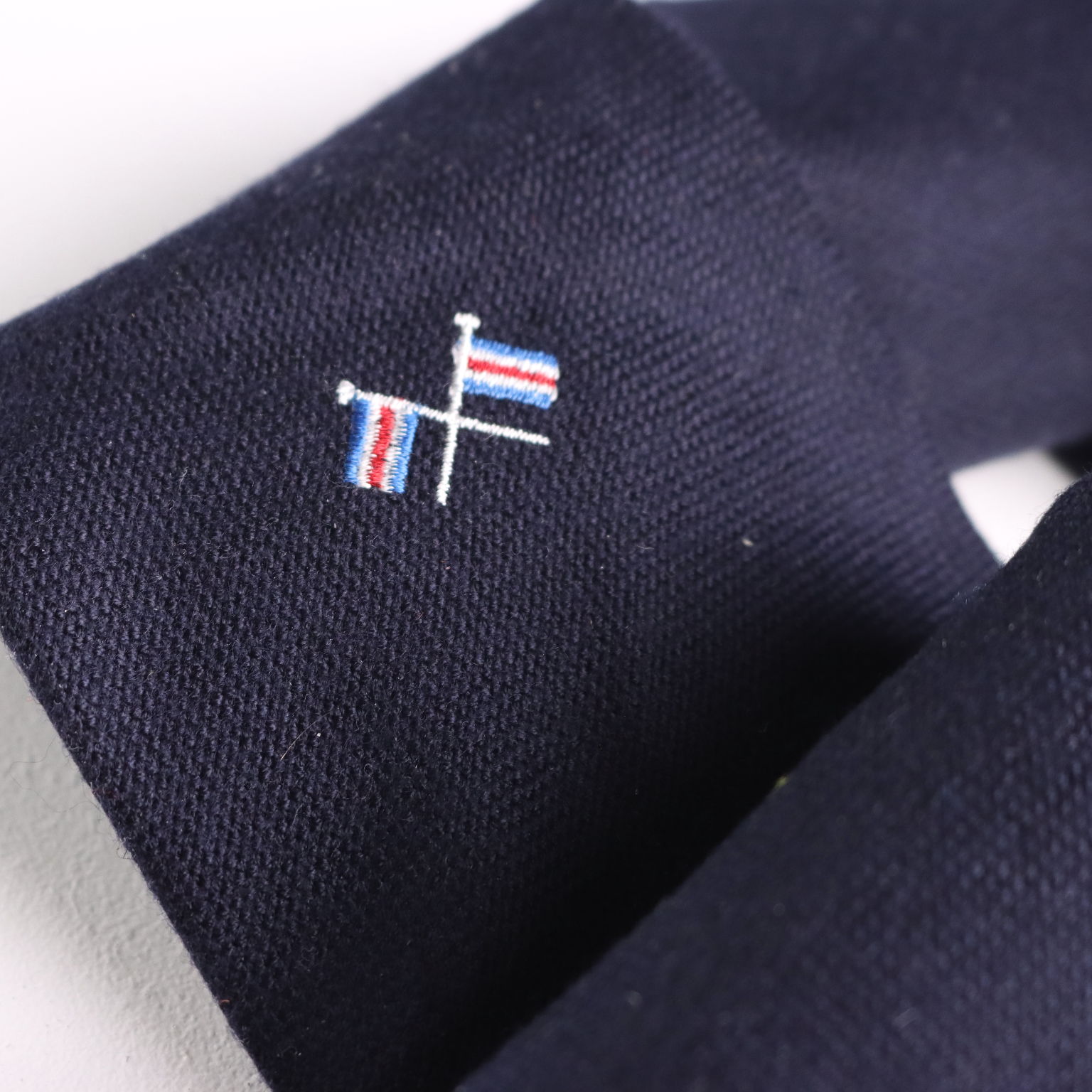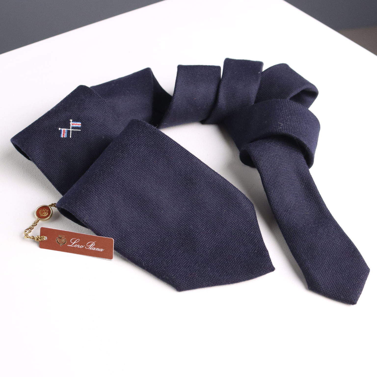 Elegante cravatta in puro cashmere blu notte, con ricamo. L'articolo non è mai stato indossato ed è dotato di cartellino originario.