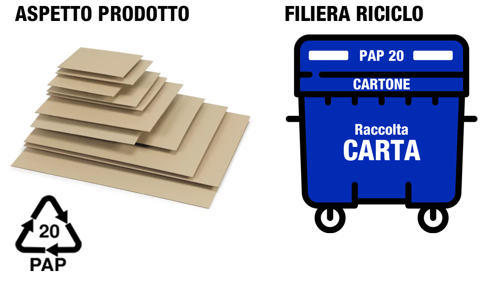 Cartone interfalda e/o protettivoIl riciclaggio del cartone è ampiamente diffuso tramite programmi di riciclaggio a domicilio e in Aree Ecologiche appositamente designate dal tuo Comune. |