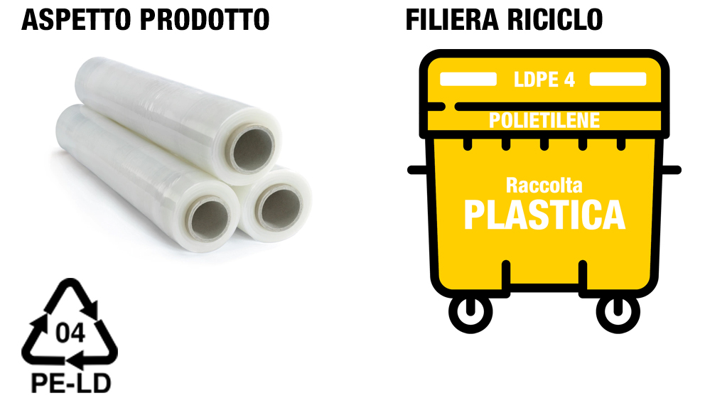 Pellicola estensibileIl riciclaggio della pellicola estensibile si effettua con la raccolta della plastica tramite programmi di riciclaggio a domicilio e in Aree Ecologiche appositamente designate dal tuo Comune. |