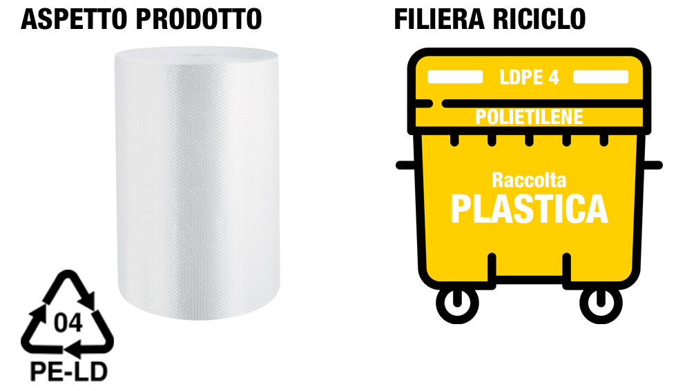 Anche il packaging deve essere introdotto in un impianto di riciclo in grado di trasformare il rifiuto in un nuovo materiale da utilizzare per un altro tipo di prodotto.
