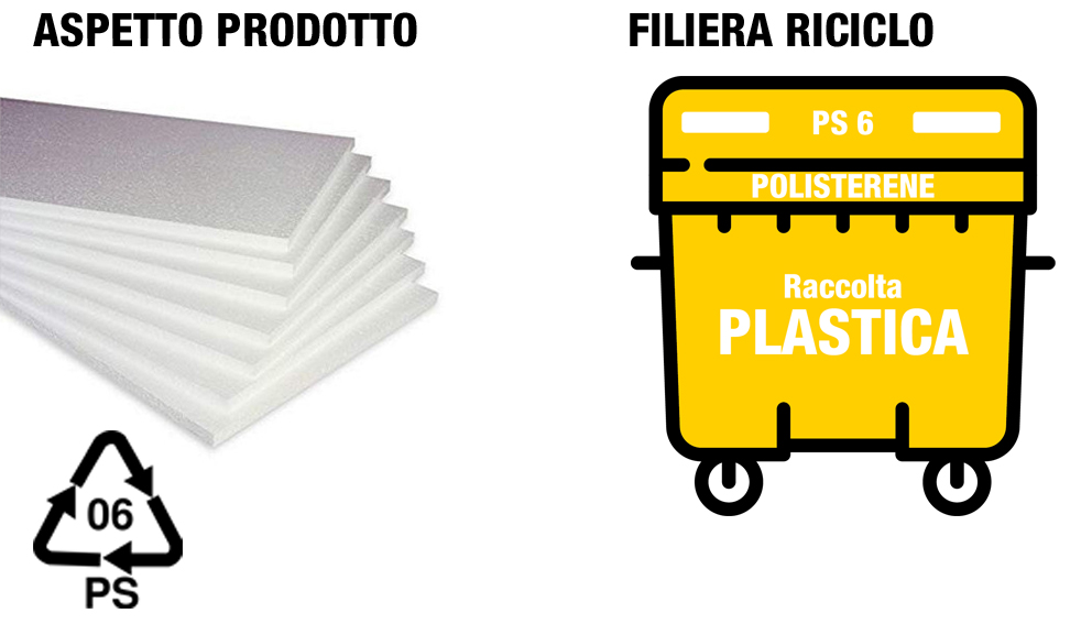 Fogli e blocchetti di polistiroloIl riciclaggio del polistirolo si effettua con la raccolta della plastica tramite programmi di riciclaggio a domicilio e in Aree Ecologiche appositamente designate dal tuo Comune. |